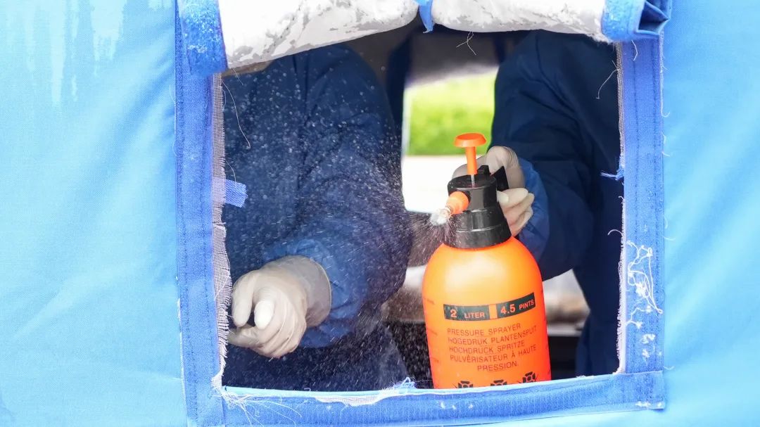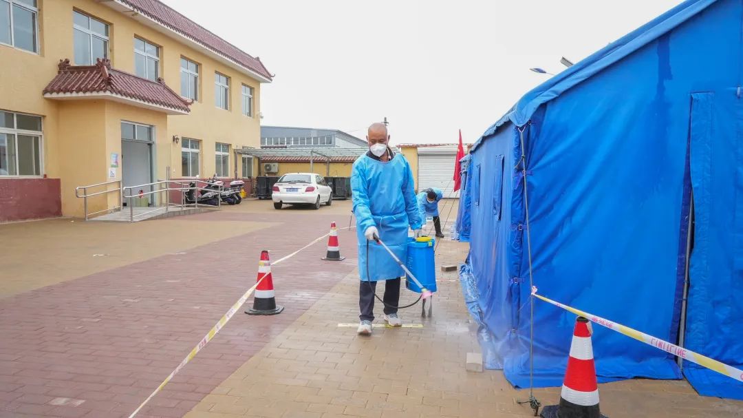 为保障核酸检测现场环境安全,工作人员及时进行消杀。