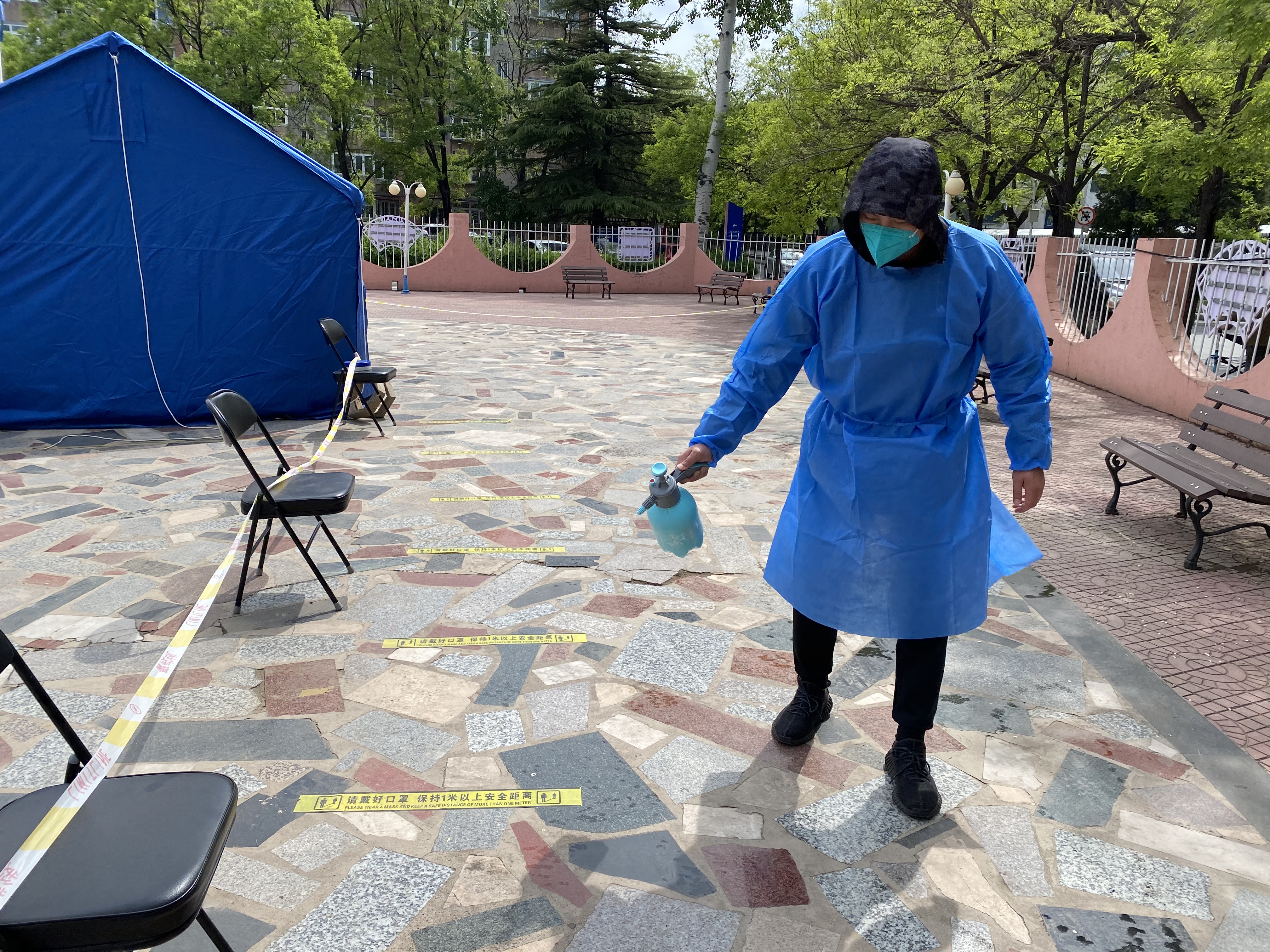 4月28日清晨5:30分,丰台区保障房公司15名下沉干部冒雨到达云岗街道北里社区,准备协助街道开始第二轮核酸检测工作。6:00整下沉干部各司其职已全部到达各自工作点位,6:10分准时进行核酸检测工作。