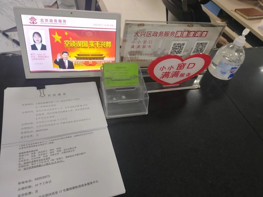 推行社区政务服务规范化建设前,居民只能在社区服务站办理专业事项,如果想办理户籍人口生育登记,残疾人证办理、变更等政务事项,需要携带纸质版材料到区级或街道级政务大厅办理,来回跑腿,费时费力。如今,清源街道政务大厅按照以“一号”申请、“一窗”受理、“一网”通办为典型经验的“互联网+政务服务”的工作模式,将政务服务综窗服务管理平台延伸到社区,通过统一配置账户,实现了社区和街道的业务、数据互通,居民在家门口就可以办理教育、就业、社保、医疗、养老、居住等70余个高频事项,让居民和企业少跑腿、好办事。
