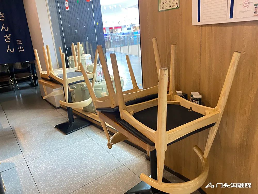 记者走访发现,北京长安天街商场所有餐饮单位均已暂停堂食,转为外卖服务。各餐饮单位门口均张贴了暂停堂食的公告,店内座椅全部收起。