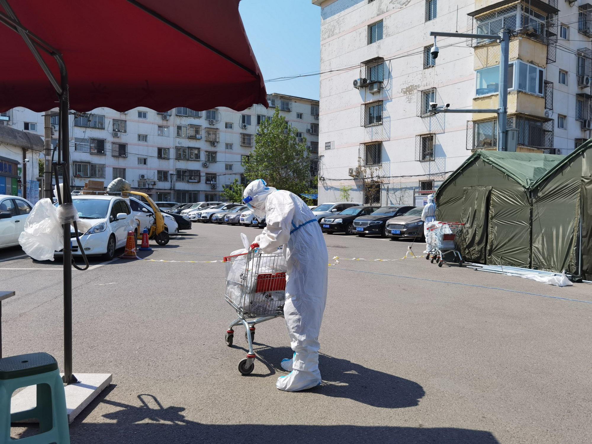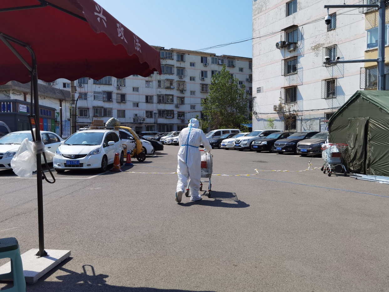 韵达快递小哥黄俊琨怎么也没想到,在到天宫院街道林海园小区送货时,竟赶上了小区封控,他没有多想,直接到居委会报了名:“反正我也出不去,就在小区当志愿者吧!”随即,他脱下快递服,换上了防护服,原地变身“大白”,继续为居民送货。