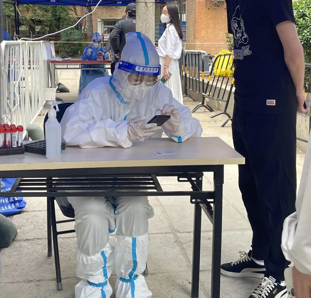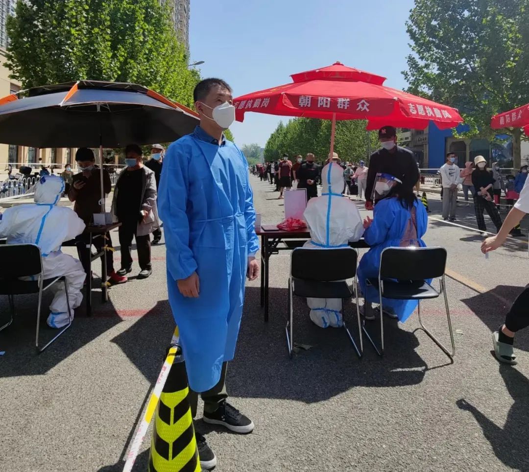 我从5月1日起下沉到到朝阳区亚运村街道北辰东路社区参加疫情防控工作,目前的主要工作是协助开展全员核酸检测工作。