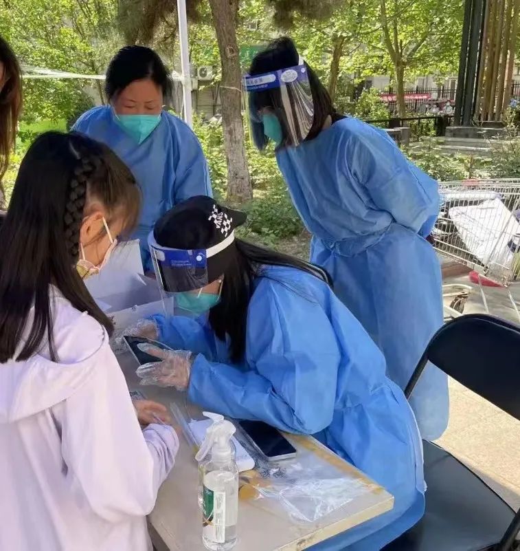 社区从4月30日开始,每隔一天进行一次全员核酸检测。我们社区的工作人员在打电话进行通知之余,还要帮助妇幼保健站的医护人员对居民开展核酸检测。