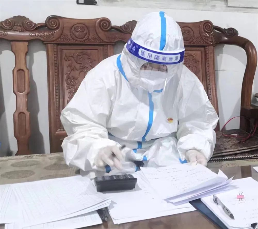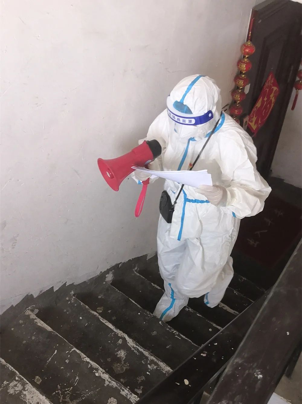 在封控区,赵雪莉和同事们争分夺秒,与疫情赛跑。白天,她和同事身穿防护服,协助医护人员挨家挨户上门进行核酸检测。封控的小区没有电梯。随着天气越来越热,每次6层爬楼下来,汗水早已打湿了后背,但是她们从未喊过累。