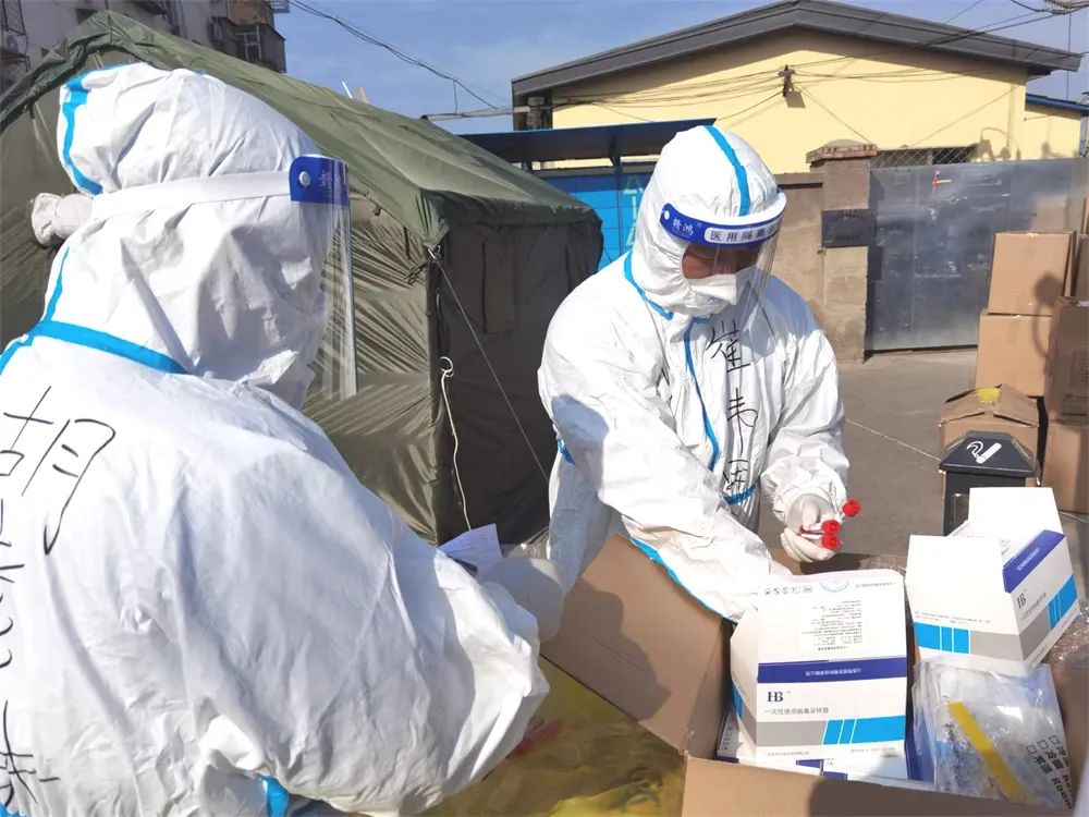 在得知小区封控的消息后,身为党员的海西社区党支部副书记赵雪莉主动请缨进驻封控区。疫情就是命令,时间紧、任务重,为了保障居民身体健康和安全,赵雪莉和同事只带了部分办公用品就匆忙前往封控区,第一时间加入到入户核查、核酸检测、转运等工作中。