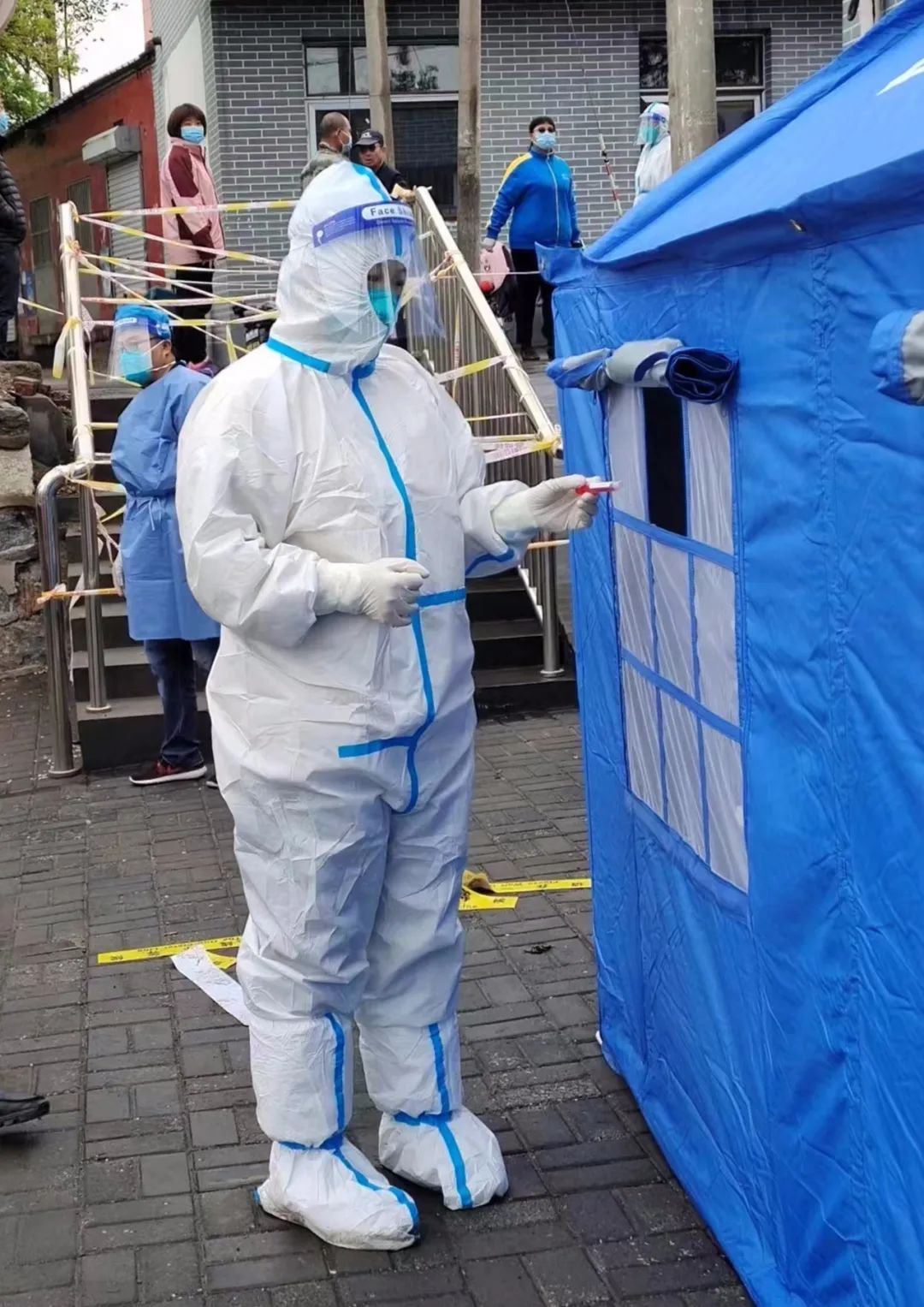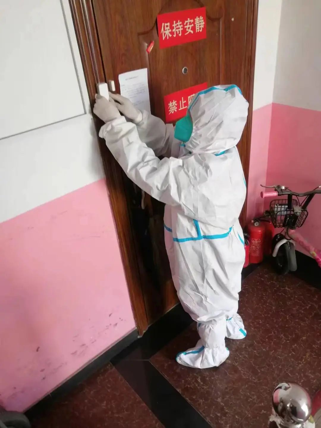长辛店街道巾帼志愿者们始终冲在战疫一线,给密接人员家庭安装门磁。她们常说:“我们是社区居民的主心骨,再危险我们都得上!”