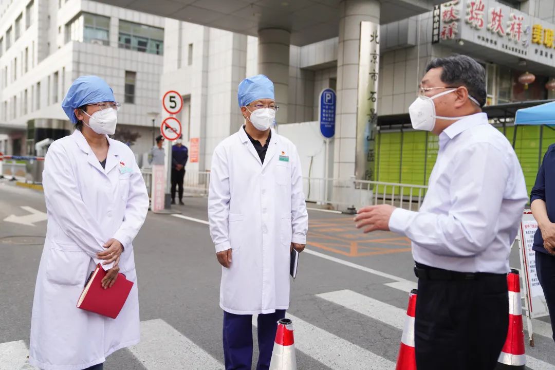 在石景山医院,常卫首先对奋战在抗疫一线的全体医务人员表示慰问和感谢。要求医院进一步落实落细各项院感防控措施,捋清院感流程,排查院感风险。要进一步优化工作方案和流程,努力为住院病人和透析病人提供好服务。