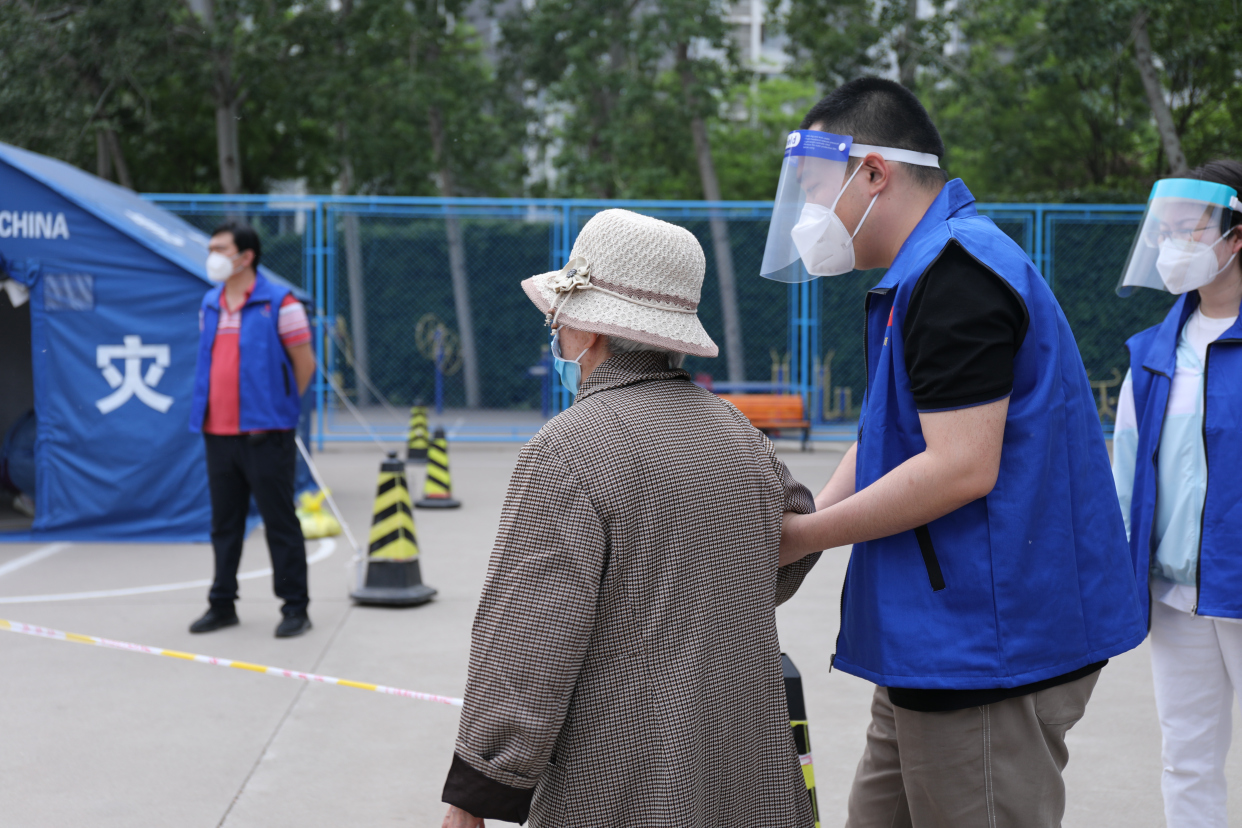 在区融媒体中心,中心党组科学调配力量确保各融媒体平台正常运转,集中力量配合区域核酸筛查期间的下沉值班,每个人都用自己的方式践行初心使命。区融媒体中心第一时间启动“双联系”和“双报到”工作,配合4个社区开始区域核酸检测。5月5日中午,最高温度达到30度,程炎林、陈丽、李军和杨慧4名党员作为志愿者来到翠微路21号社区,负责协助核酸检测过程中的信息采集和队伍秩序维持。