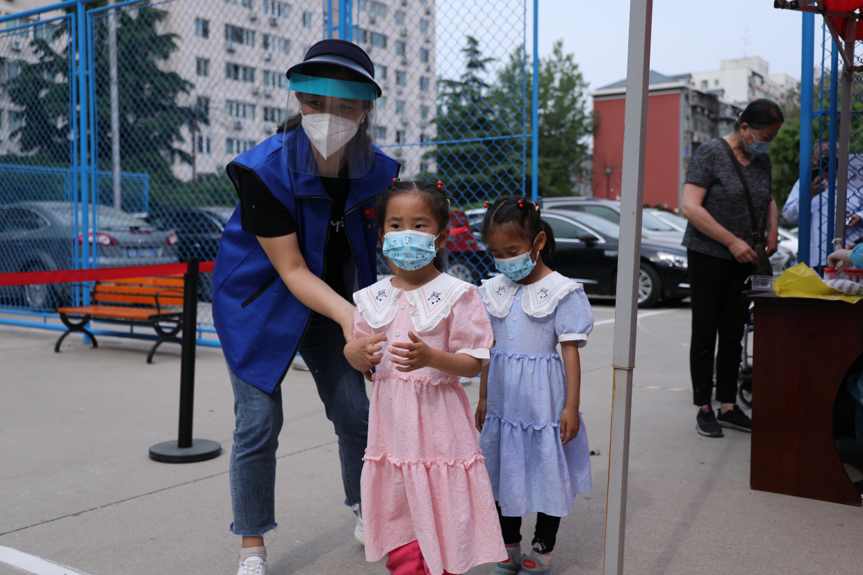 “阿姨,这是谁家的小姑娘,真可爱。”“这是我的重孙女”和刘仁一起的,还有同事任晓娟,在维持队伍、查验健康宝的同时,也会与前来检测的老人攀谈几句,缓解老人的紧张情绪。“在整个过程中,不能过多与他们交流,但看到有些紧张的老人,我也会主动问候一下,让老人踏实一些,同时,能够下沉到社区,做好秩序员、信息员,为我区疫情防控做贡献,我感到非常骄傲和自豪。”任晓娟说道。