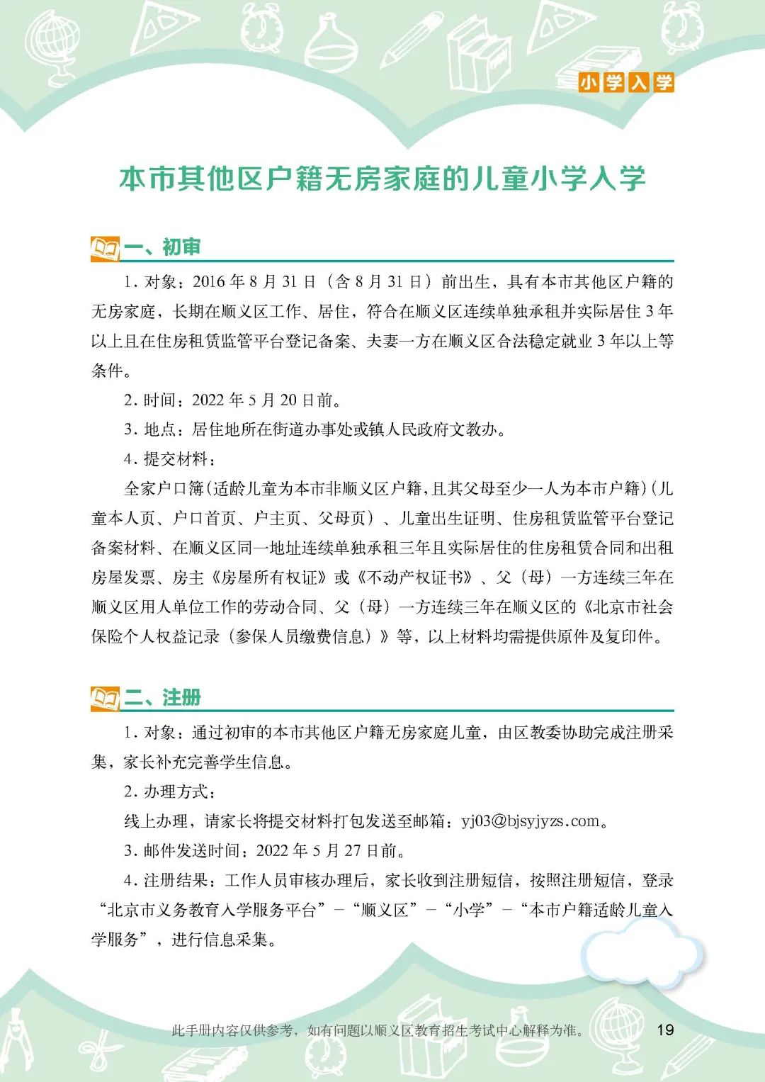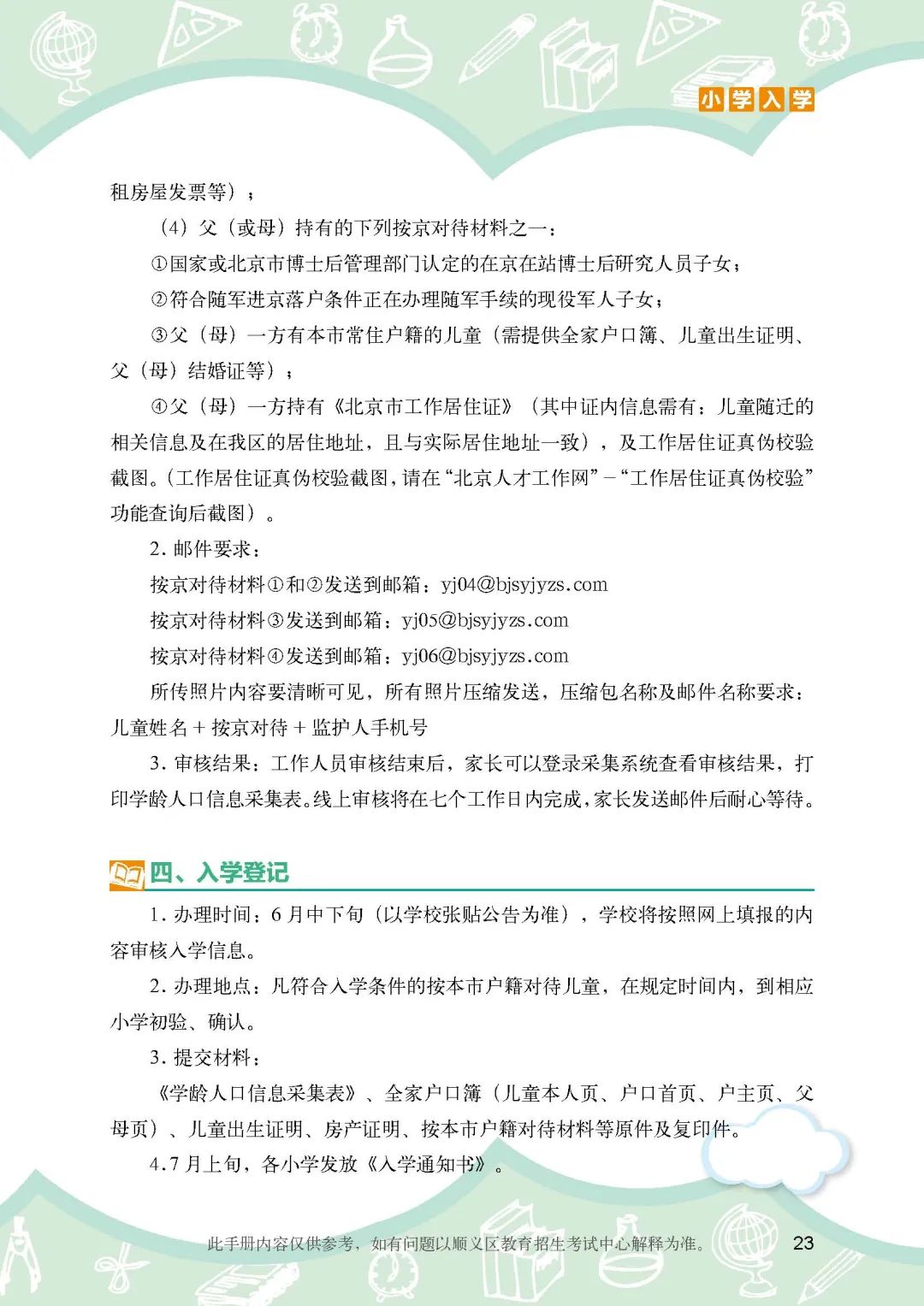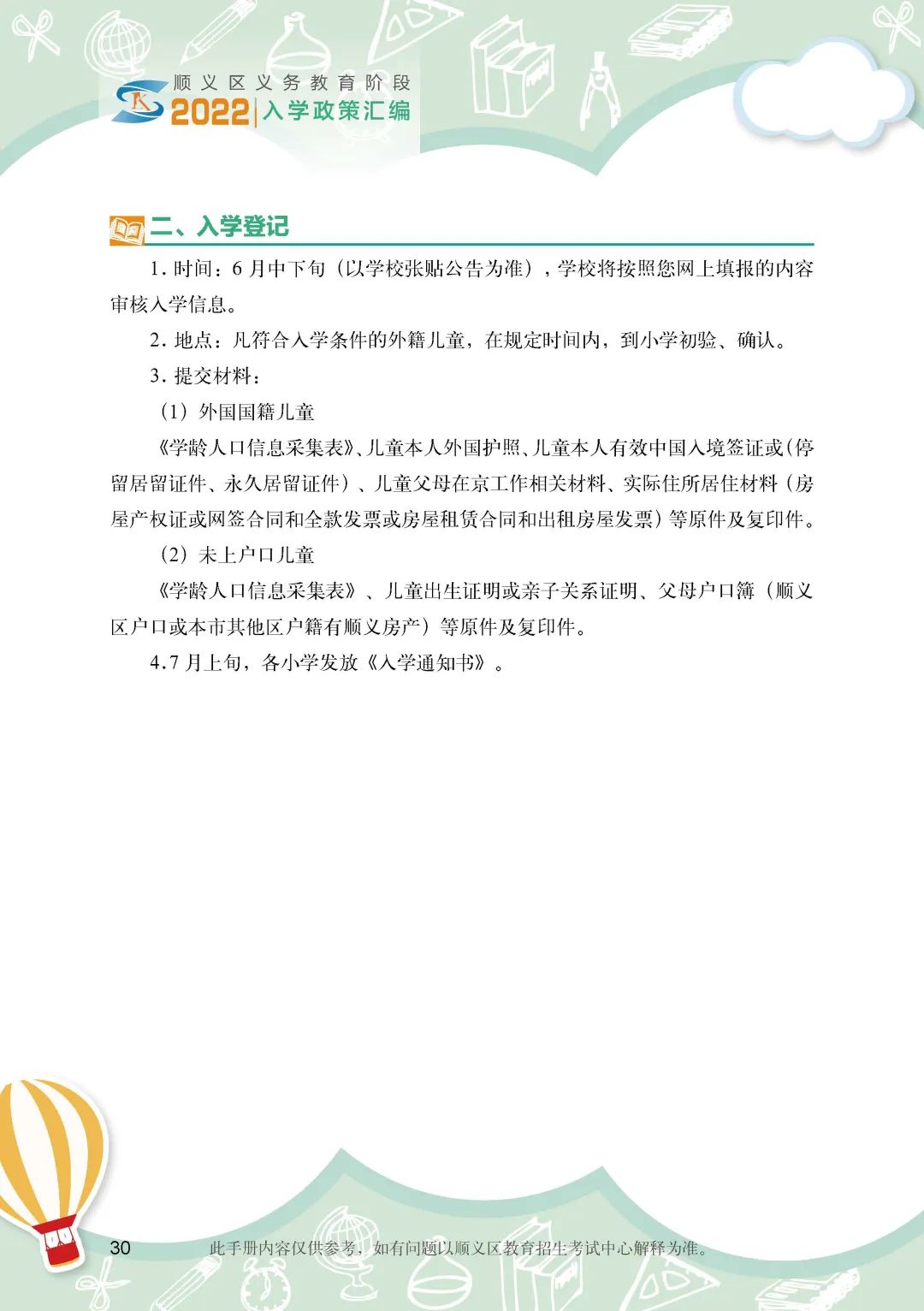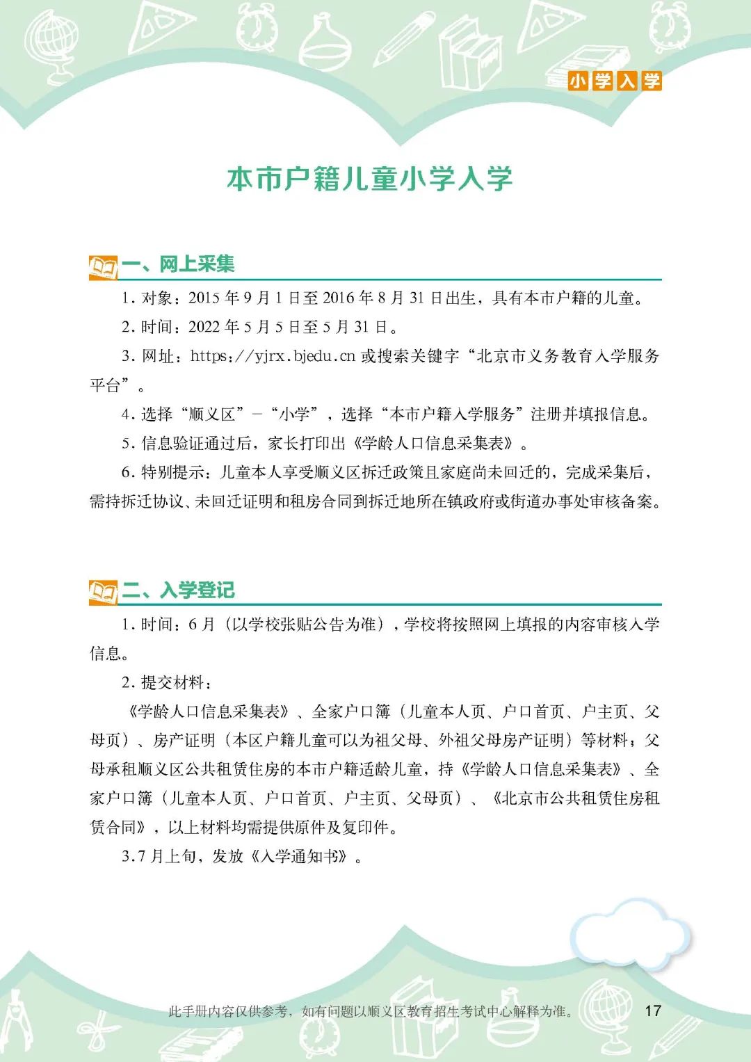 《顺义区小学入学政策细则》