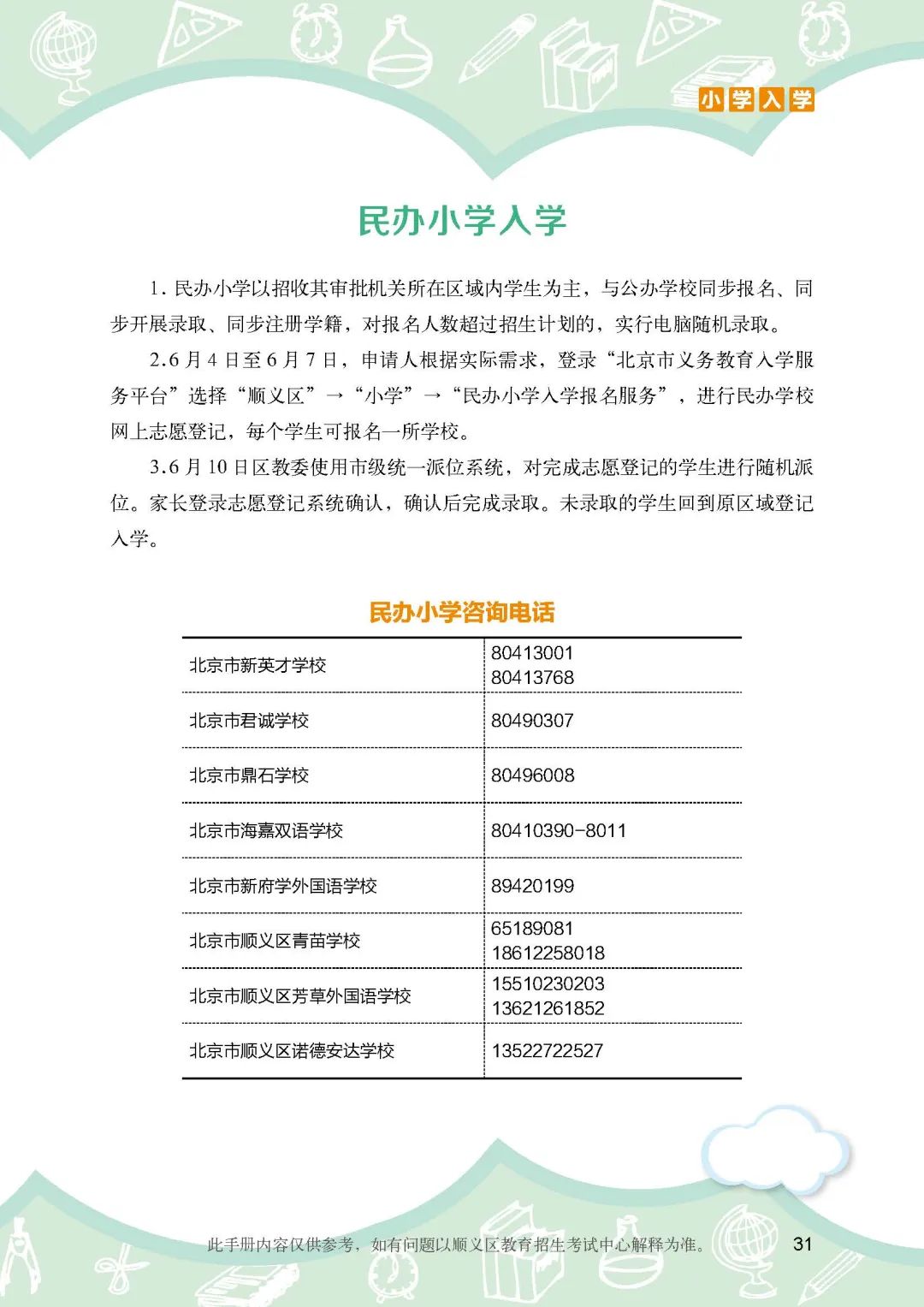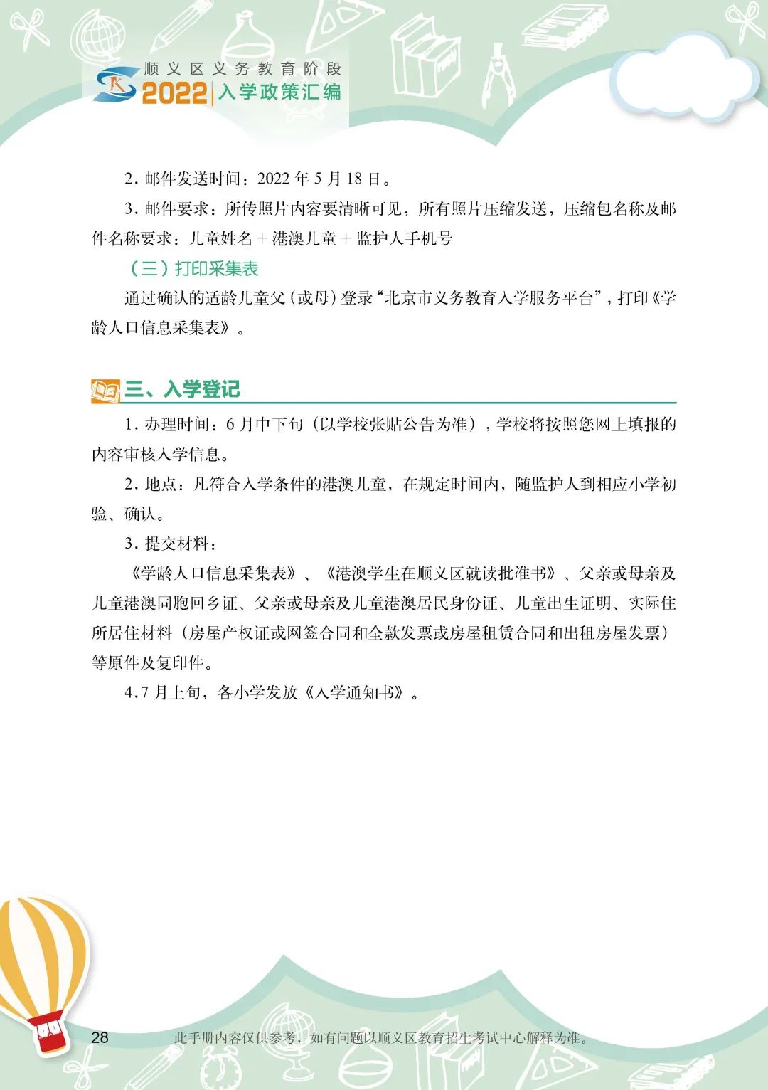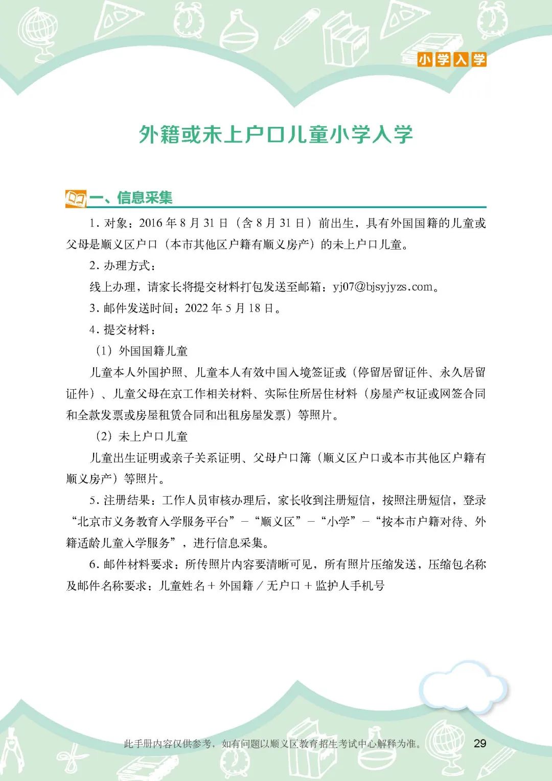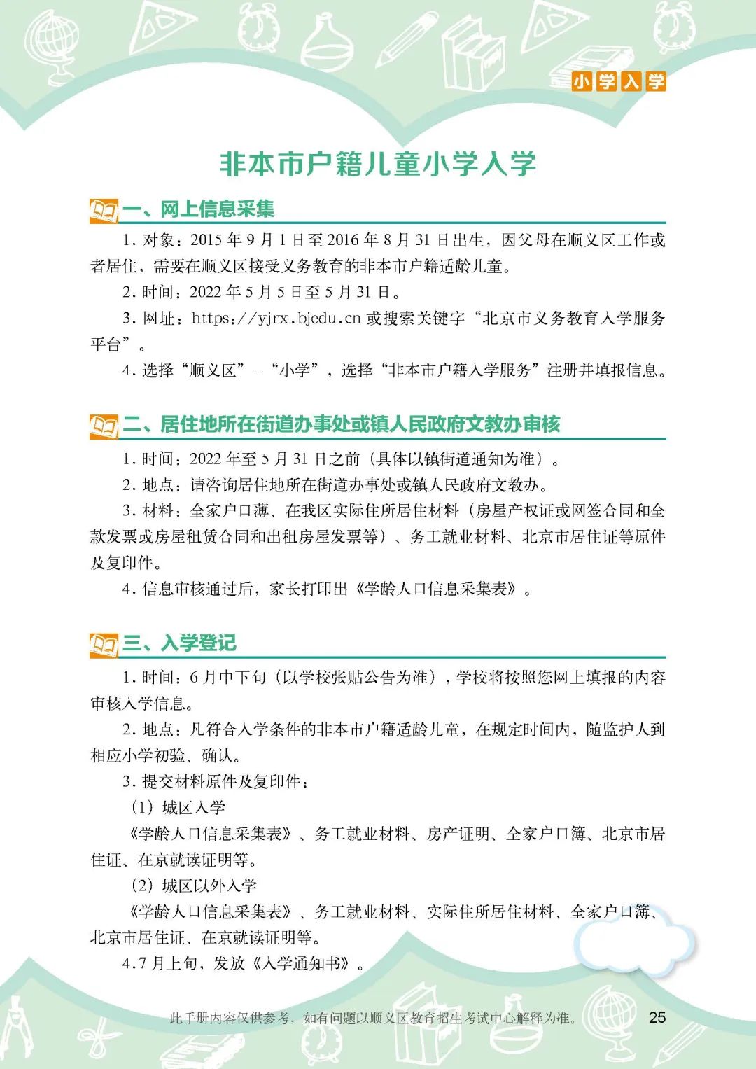 《顺义区小学入学政策细则》
