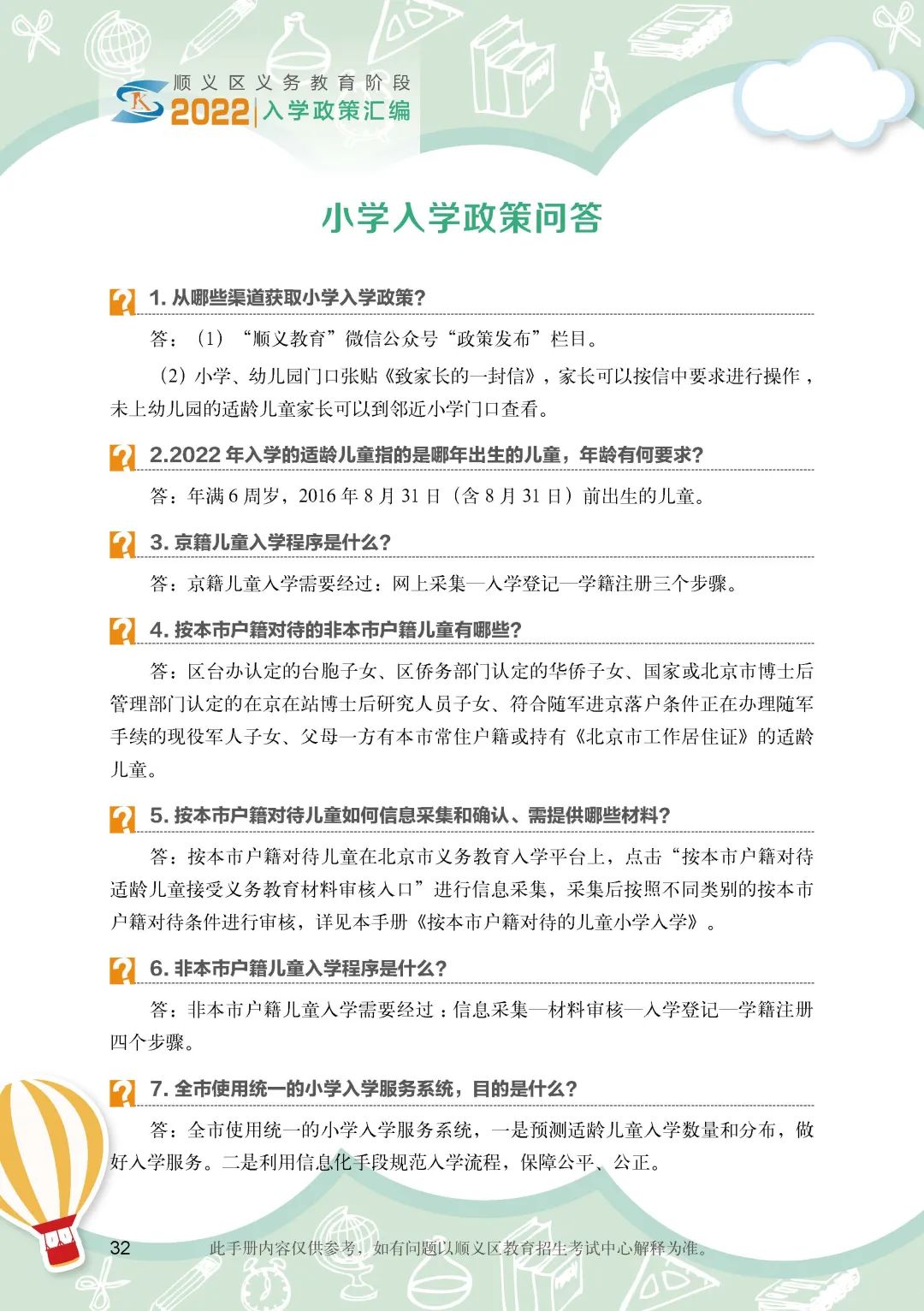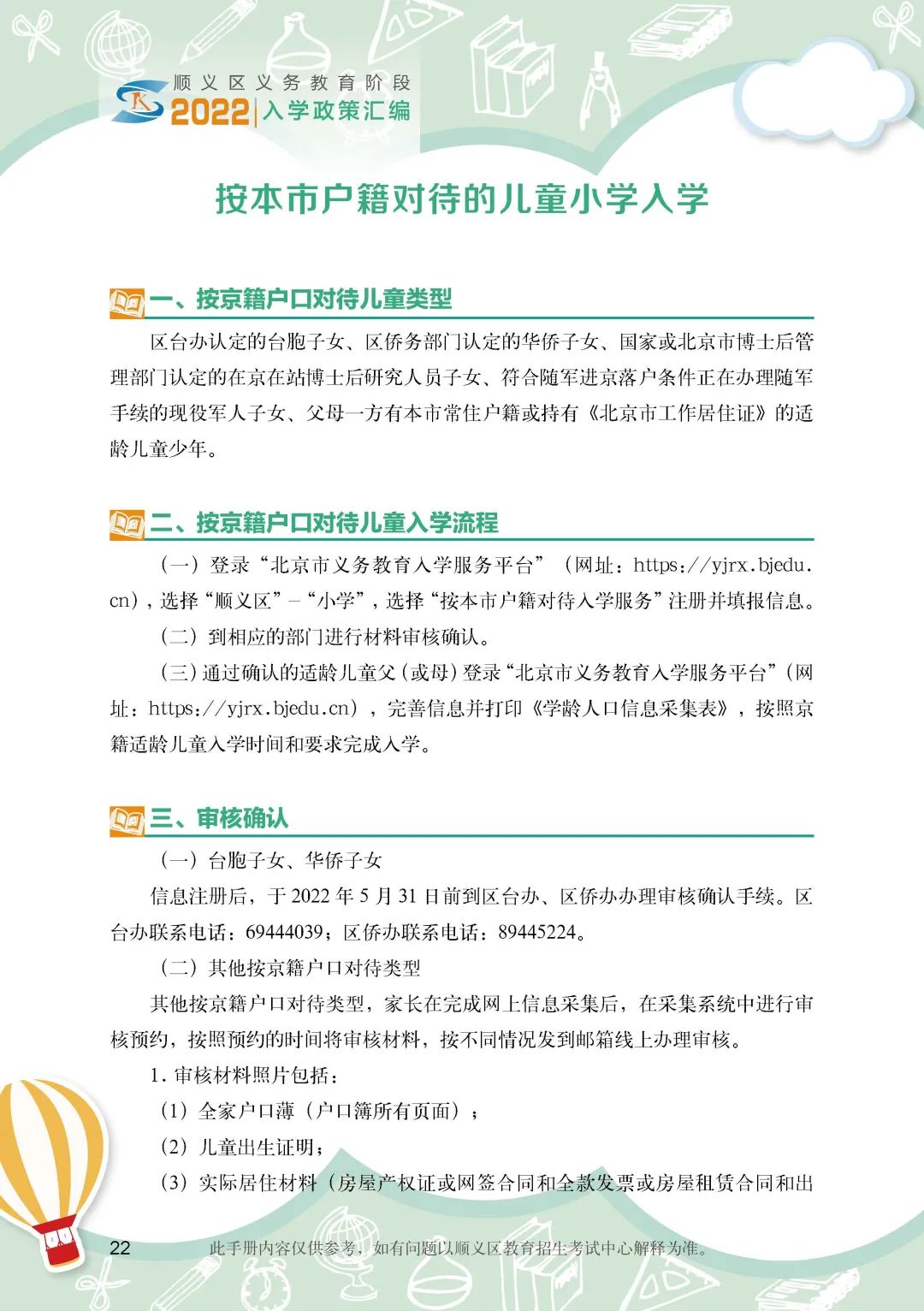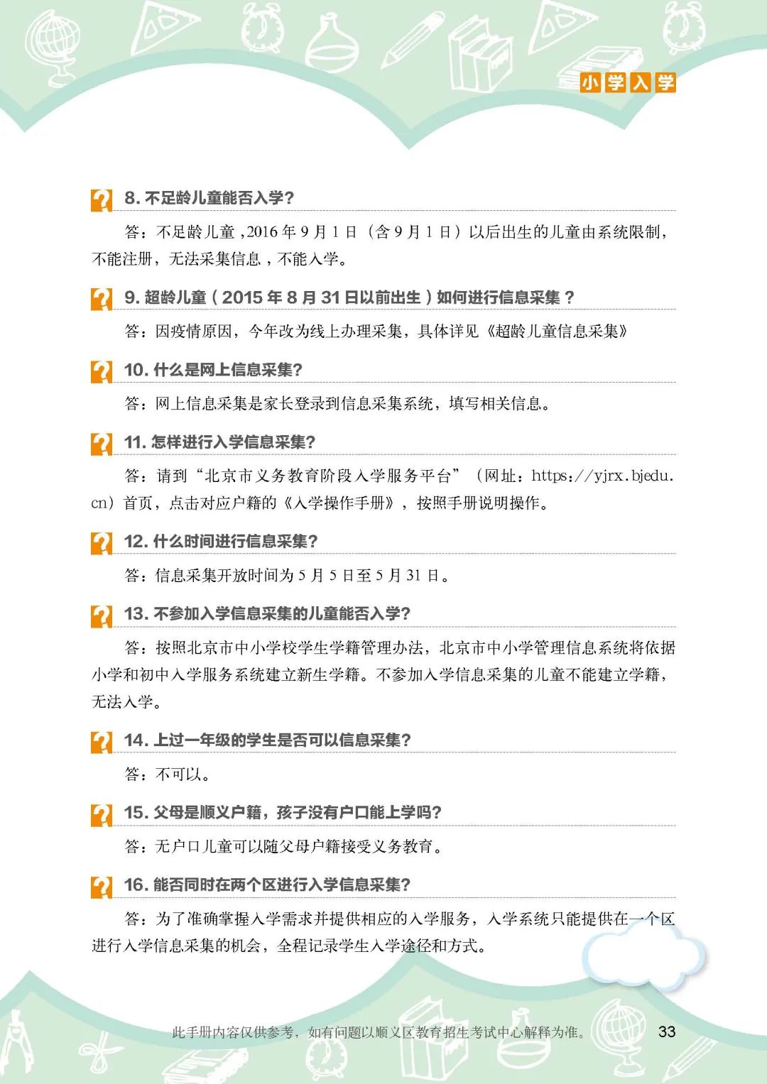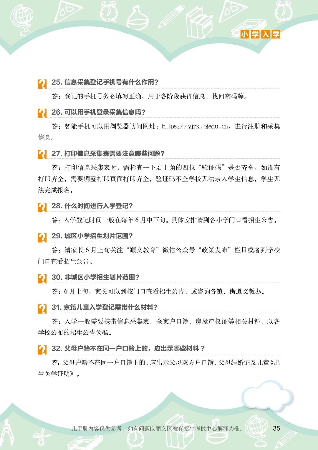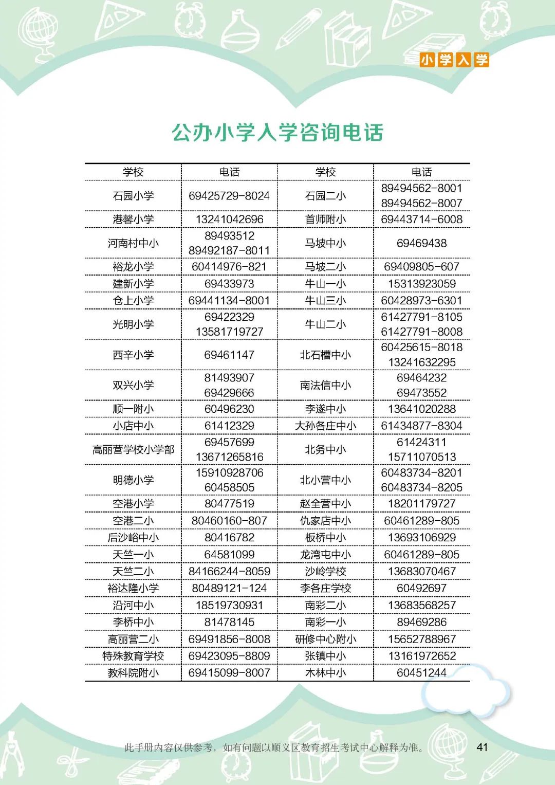 《顺义区小学入学政策细则》