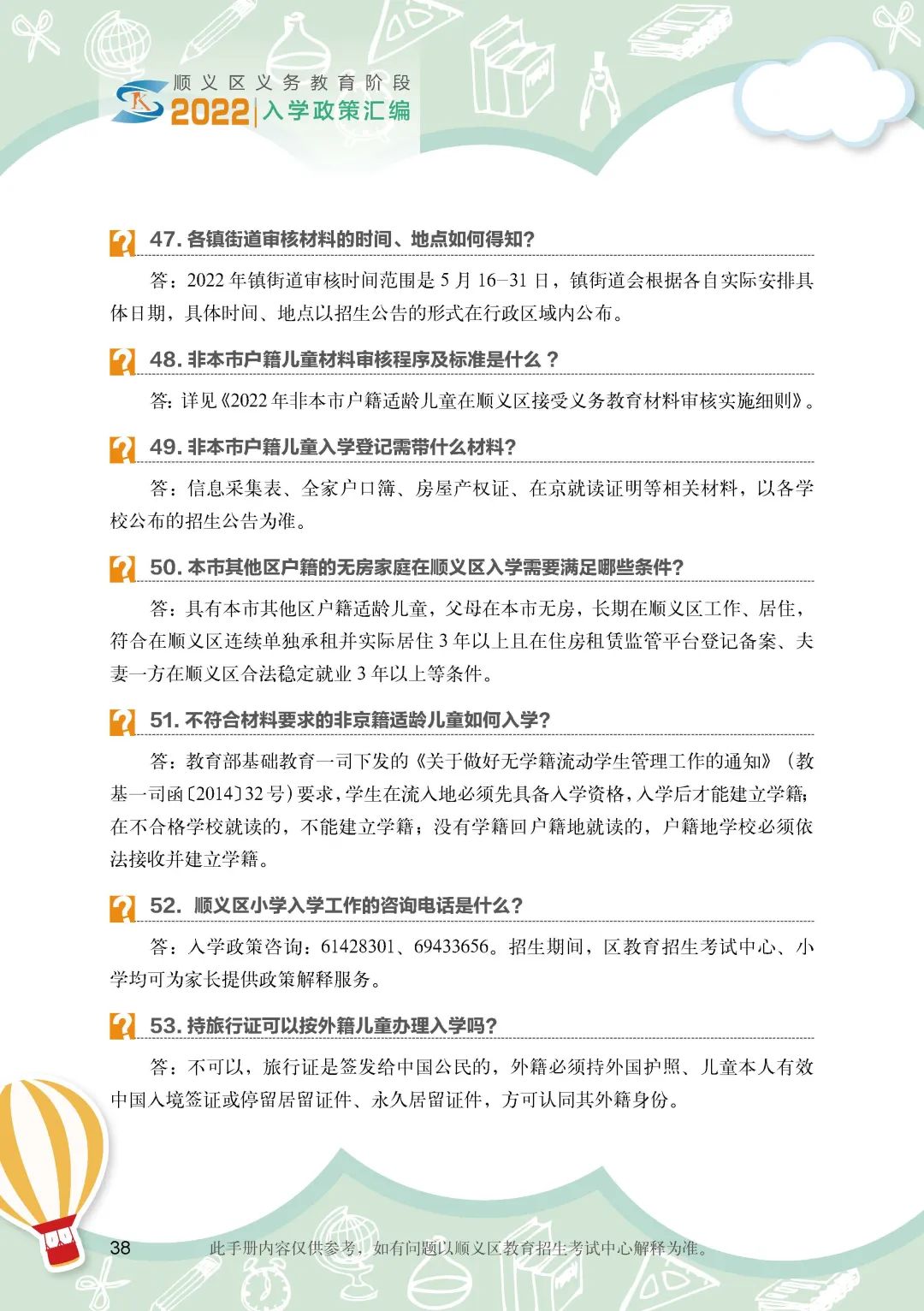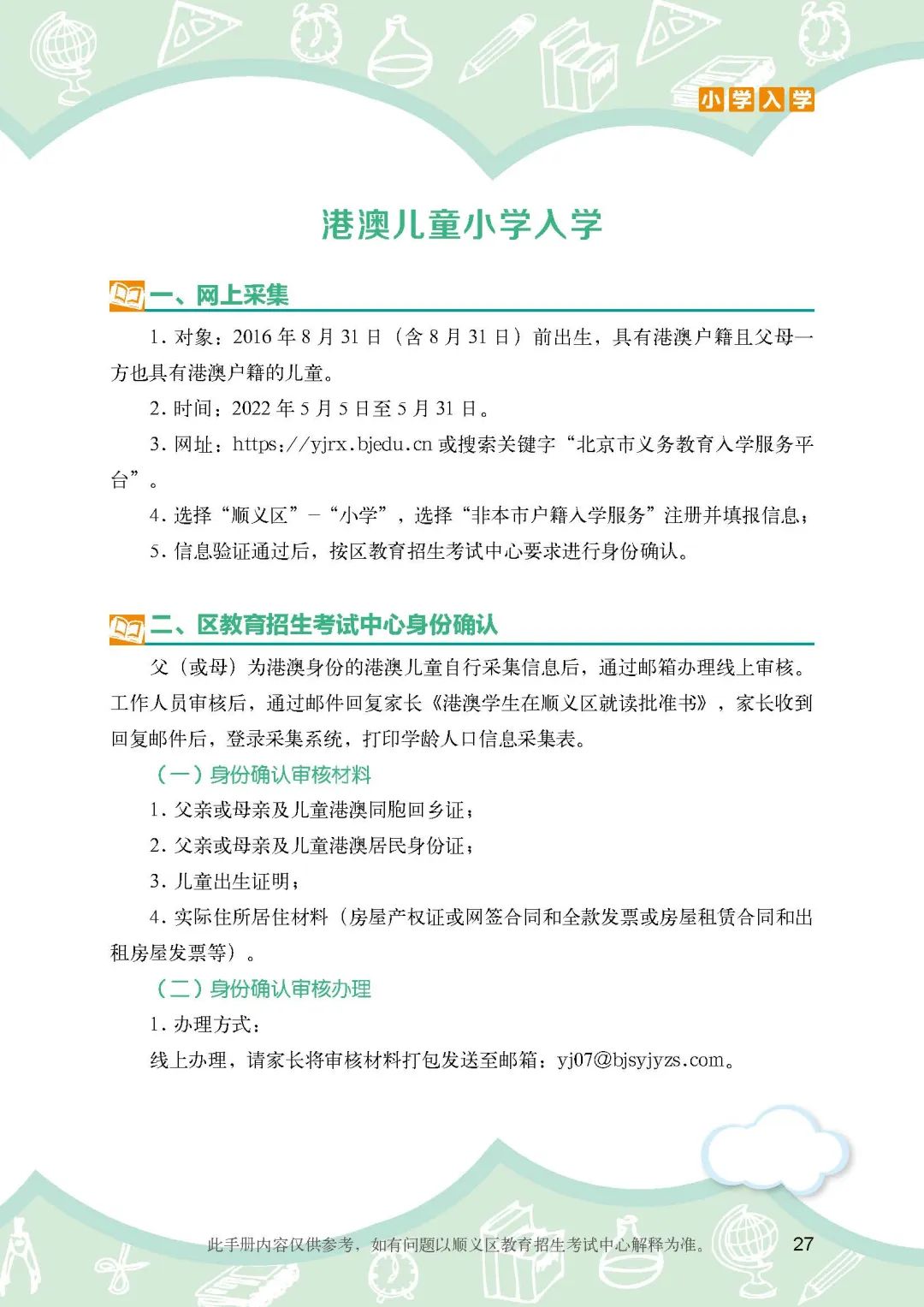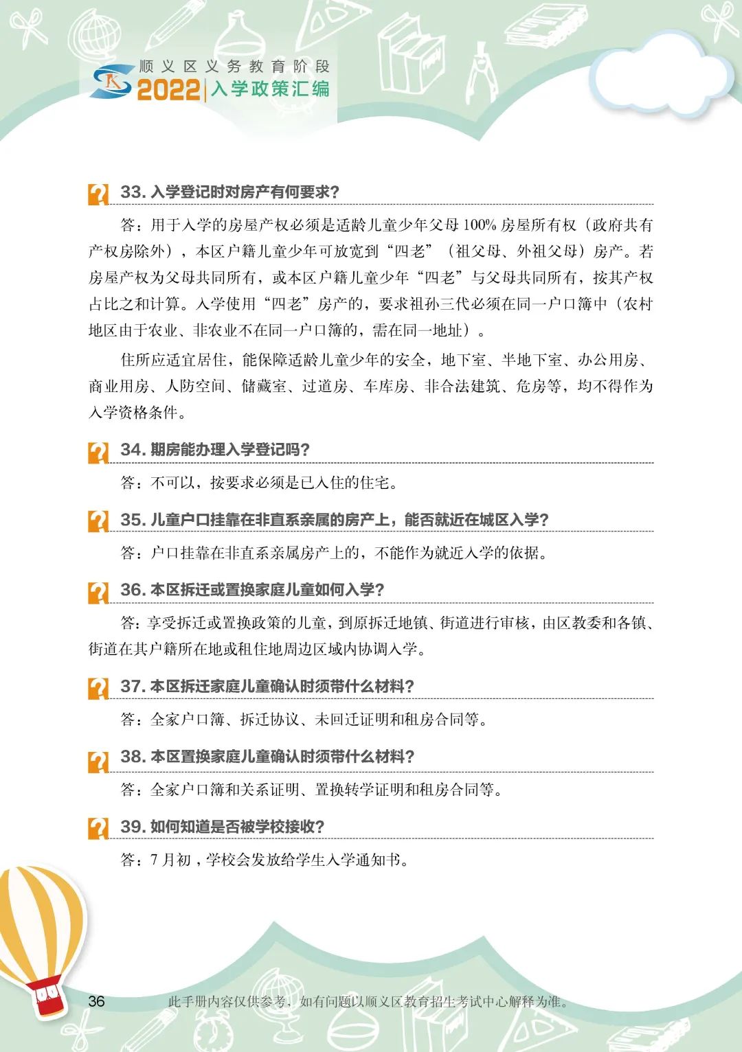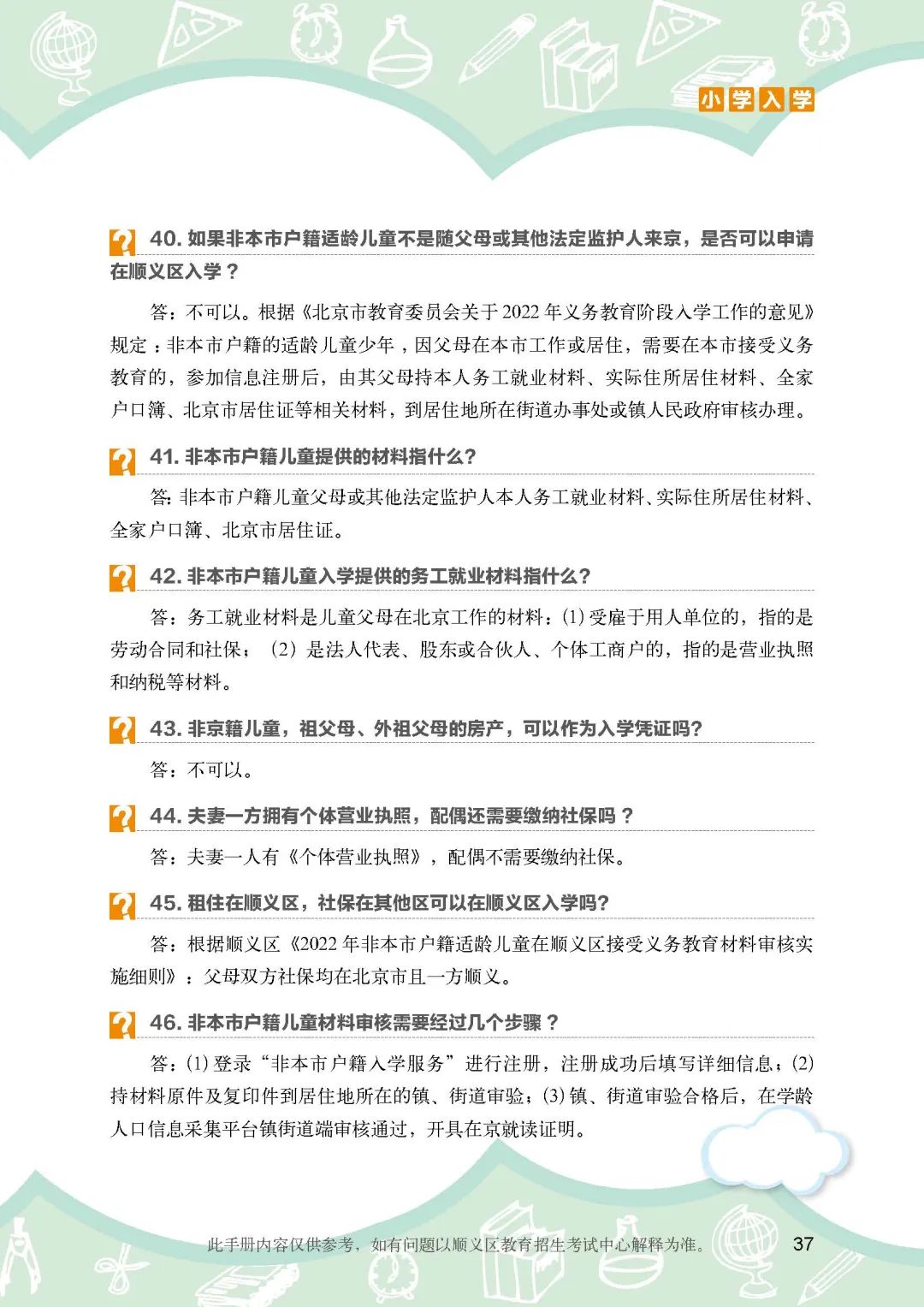 《顺义区小学入学政策细则》