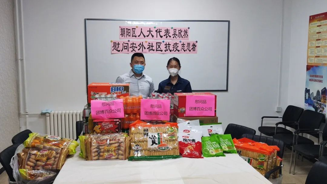 朝阳区人大代表、安贞街道商会副会长、团博百众(北京)科技有限公司总经理吴欣然到安华里社区、安外社区慰问防疫工作者。他还积极响应商会号召,自5月1日—5月9日,从公司团队中安排2名志愿者每天风雨无阻,准时到社区报到支援核酸检测任务。吴欣然说,“连续几轮的核酸工作,一线工作者真的非常辛苦,对于志愿者、医护人员这种牺牲小我,保全大家的精神,我深受感动,你们一定要保重身体。