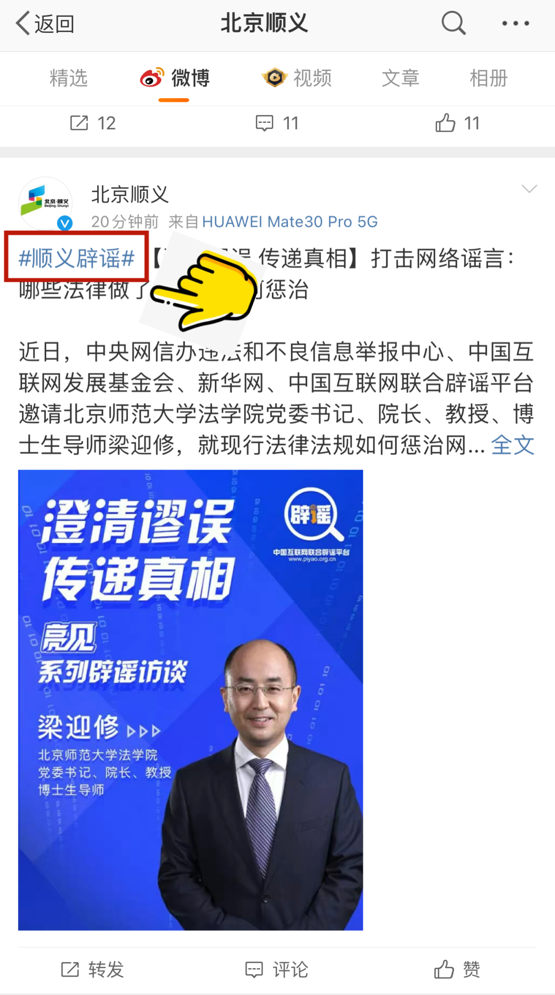 “北京顺义”微博开设“顺义辟谣”话题