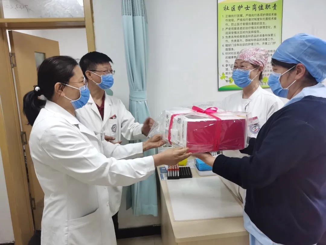 红卫路社区卫生服务站为护士们献上美好祝福和慰问品。