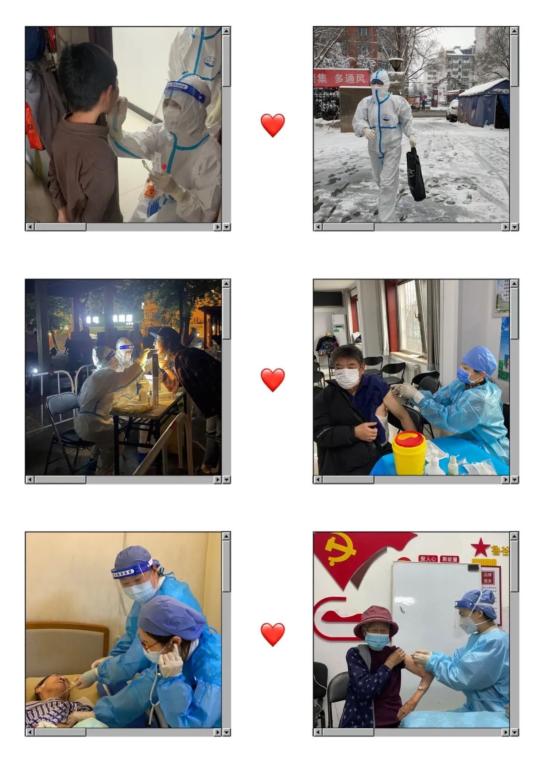 2022年是不平凡的一年,在新冠肺炎疫情阻击战中,面对严峻复杂的疫情防控形势,广大社区白衣天使扎根基层,冲锋在疫情防控第一线,无论是上门核酸采集、全员核酸检测、新冠疫苗接种,还是预检分诊、风险排查、医疗救护、上门出诊,都留下了你们忙碌的身影。