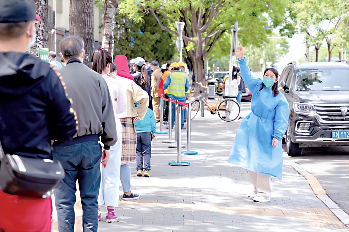 往常,这两个身份并不冲突。张海川在完成中心交给的工作时,还会在群里面跟居民互动,提示居民适度养生。但现在,他有点忙不过来。就拿前几天的核酸筛查工作来说,即使全中心的人都调配了出去,仍有地方支援力量不足。“集中筛查就会这样,我们心里有预期,咬咬牙就过去了,居民安全要紧。”结果,张海川的服务时长从刚开始定好的两个小时延长至四个小时,他粗略地算了一下,自己服务了近七百人,“我这还好,可能因为从医时间长,有同事从岗位下来,胳膊累得都抬不起来。”