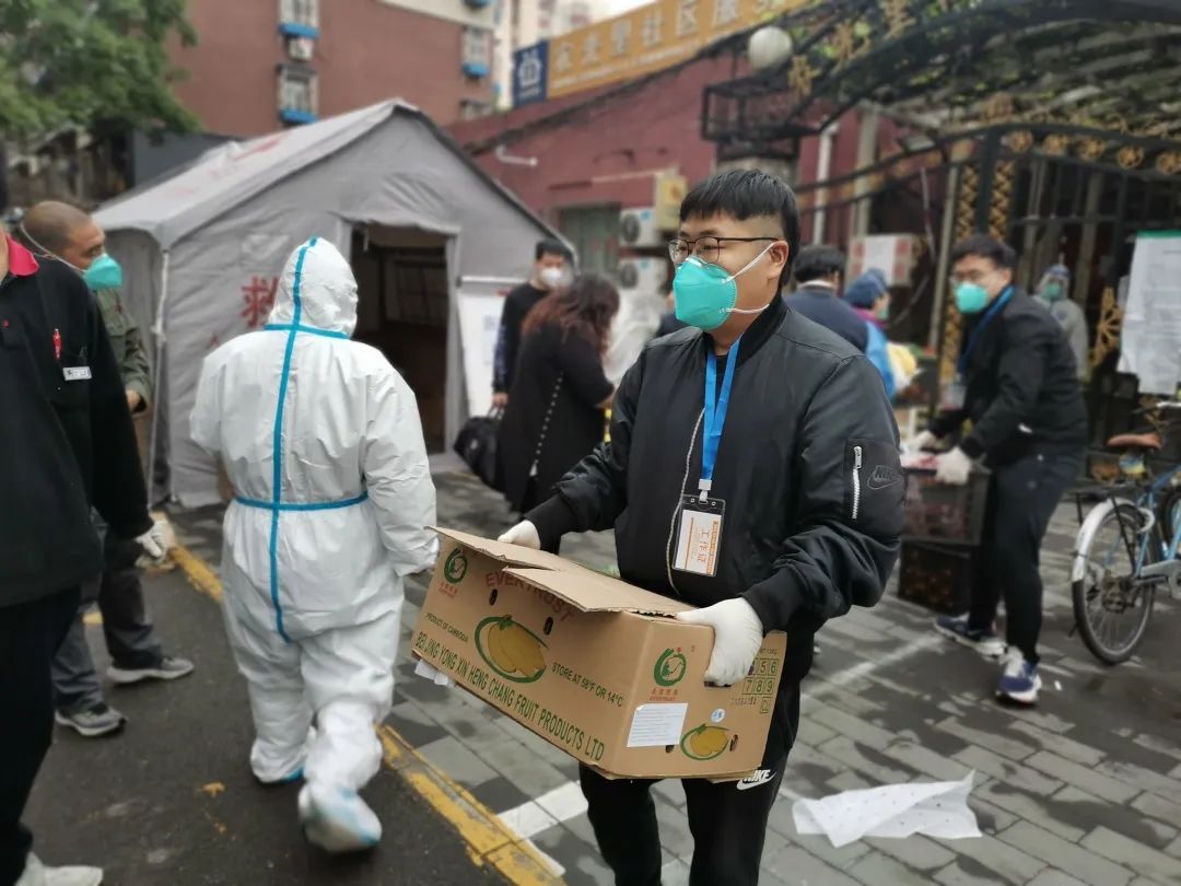 周永铭、刘哲、韩志刚、胡忠信、张波在农光里社区每天负责收集整理生活物资需求清单,然后仔细对照清单,进超市、跑市场,为居民采买生活用品。“百姓的事耽误不得,尽快送达,让他们多一份安心”。胡忠信说道。