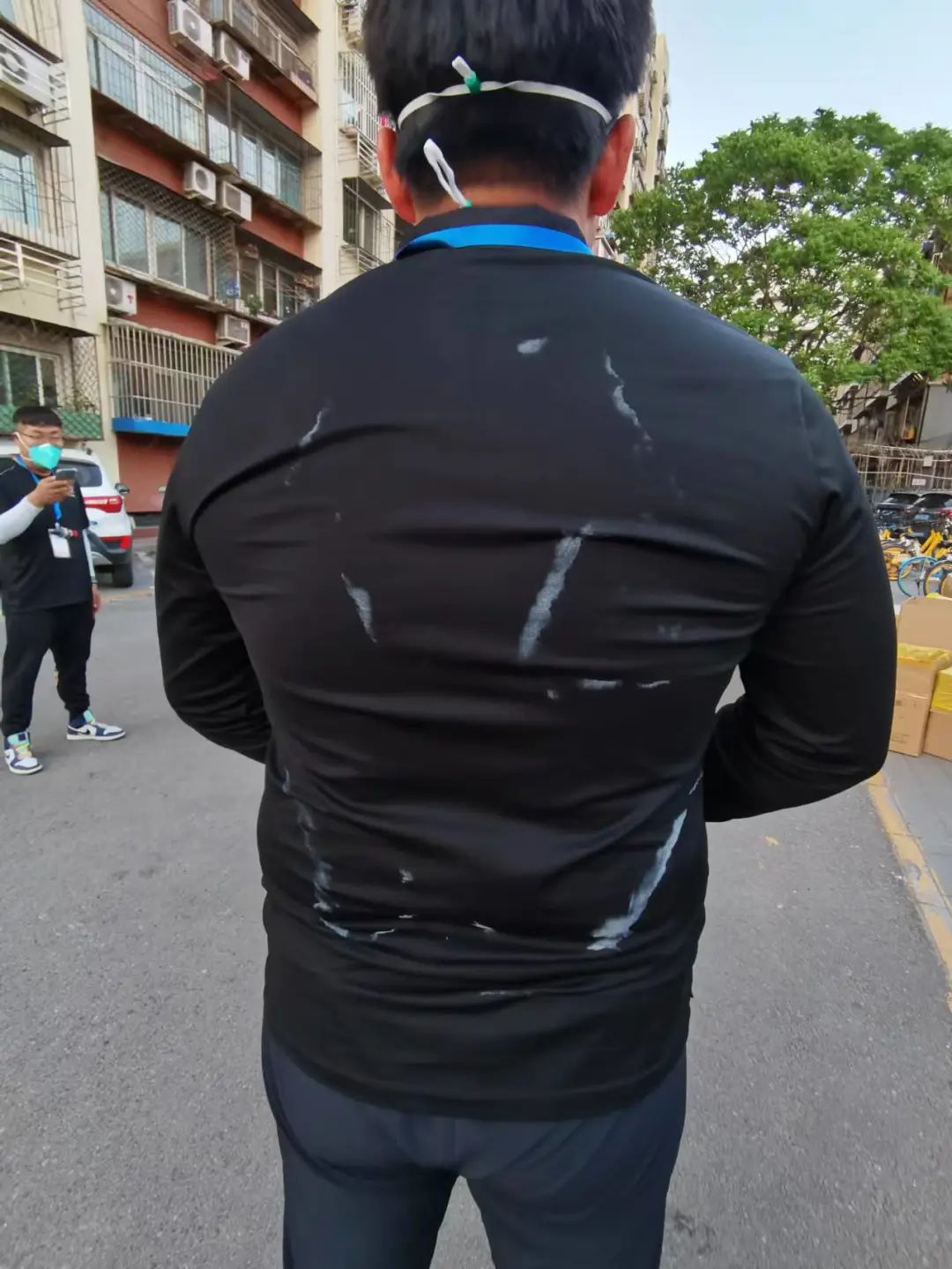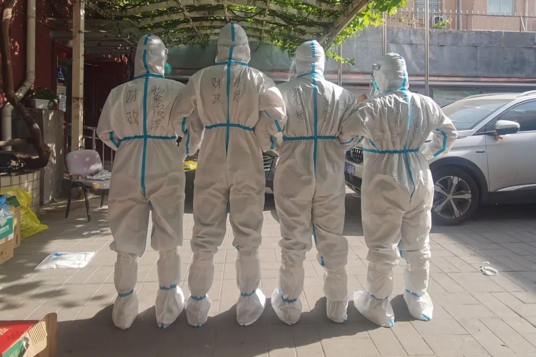 由于支援的地方大都是封(管)控区,所以大家格外注意防护安全,穿上隔离服,套上鞋套,戴上手套,一层楼一层楼地爬……在层层包裹下,只有看后背标注好的名字才知道对方是谁,“看到名字就心安,因为战友就在身边!”张桐说道。
