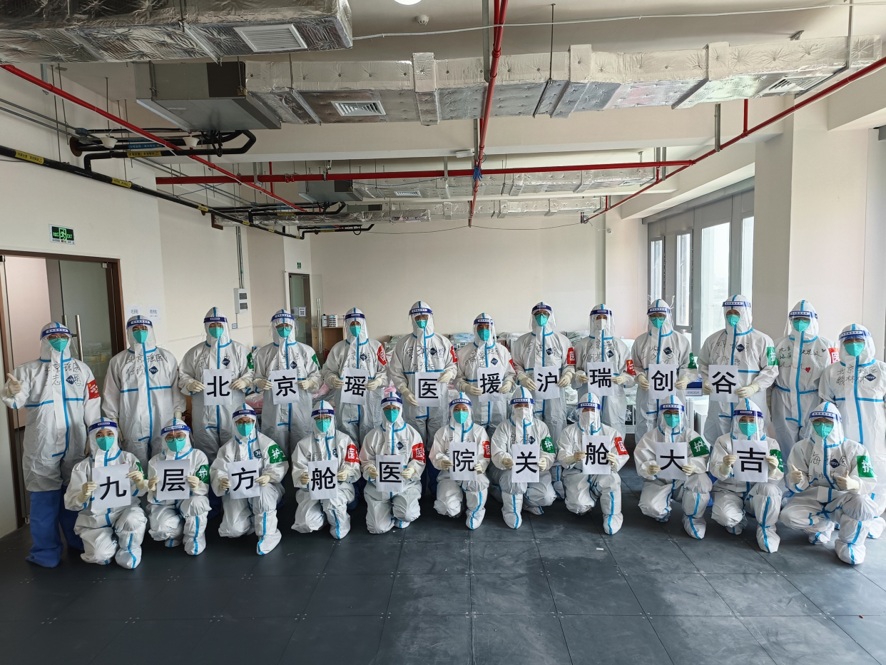 上海瑞创谷方舱医院9层病区留下了北京瑶医援沪医疗队成员的辛劳身影,更让人看到了医护、患者、志愿者等所有人团结一心、患难与共的温暖和力量。