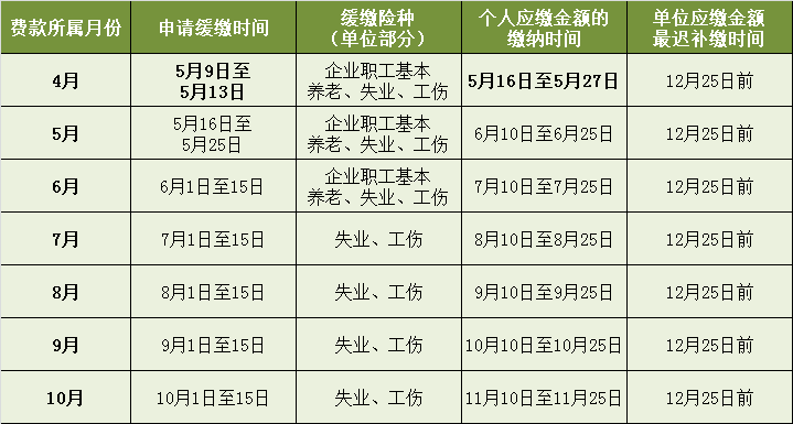 在5月16日至5月25日申请从5月起享受缓缴政策;