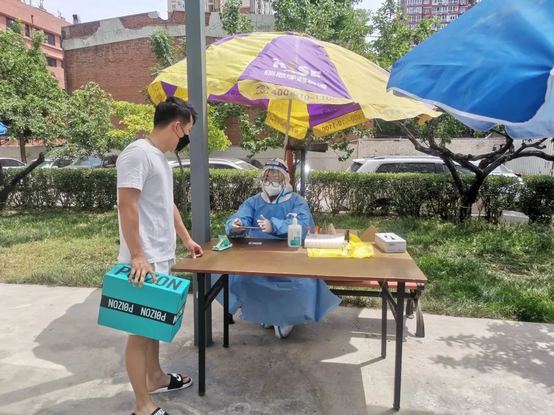 从早上的凉风习习到中午的酷暑难耐,一坐几个小时,不敢喝水,没空休息,即使汗水湿透衣服,也没人叫苦,没人喊累......他们与时间赛跑,与疫情抗争,确保核酸检测工作高效、有序开展。截至目前,已完成4500余人次的核酸采样工作。
