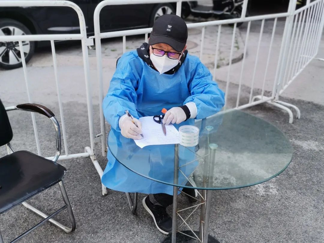 我是御景园核酸检测点点长,每天为780余名群众进行核酸采样。5月17日凌晨12点左右,我接到通知,家人们虽有担心但也都很支持,儿子、儿媳也都在防疫一线,我觉得很自豪。尤其自己还是一名老党员,党龄已有34年了,哪里有需要,就当冲向哪里。——管常明