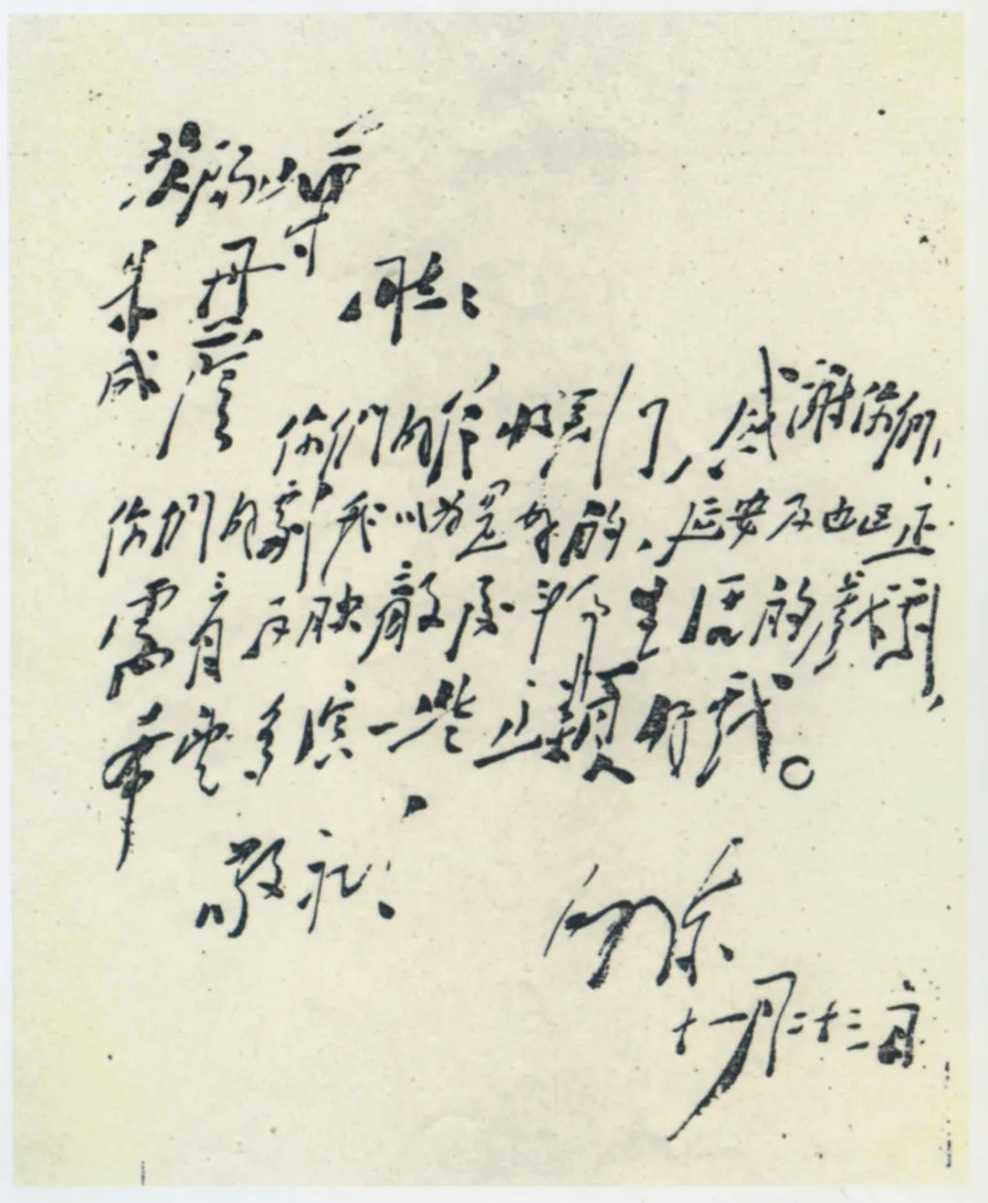 毛泽东于延安文艺座谈会后写给战斗剧社欧阳山尊等人的亲笔回信