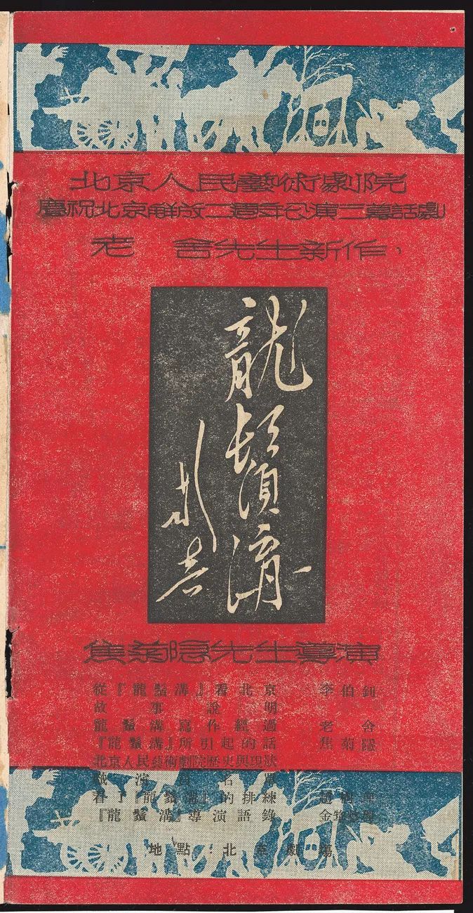 1950年,北京人民政府决定进行下水道整治改造,北京最大的臭水沟与贫民窟龙须沟也得到了大规模的环境改善,这样一件关乎民生的新首都建设举措在老舍的笔下,经由北京人艺的演出,得到了最广泛与极具成效的宣传,这部作品就是《龙须沟》。