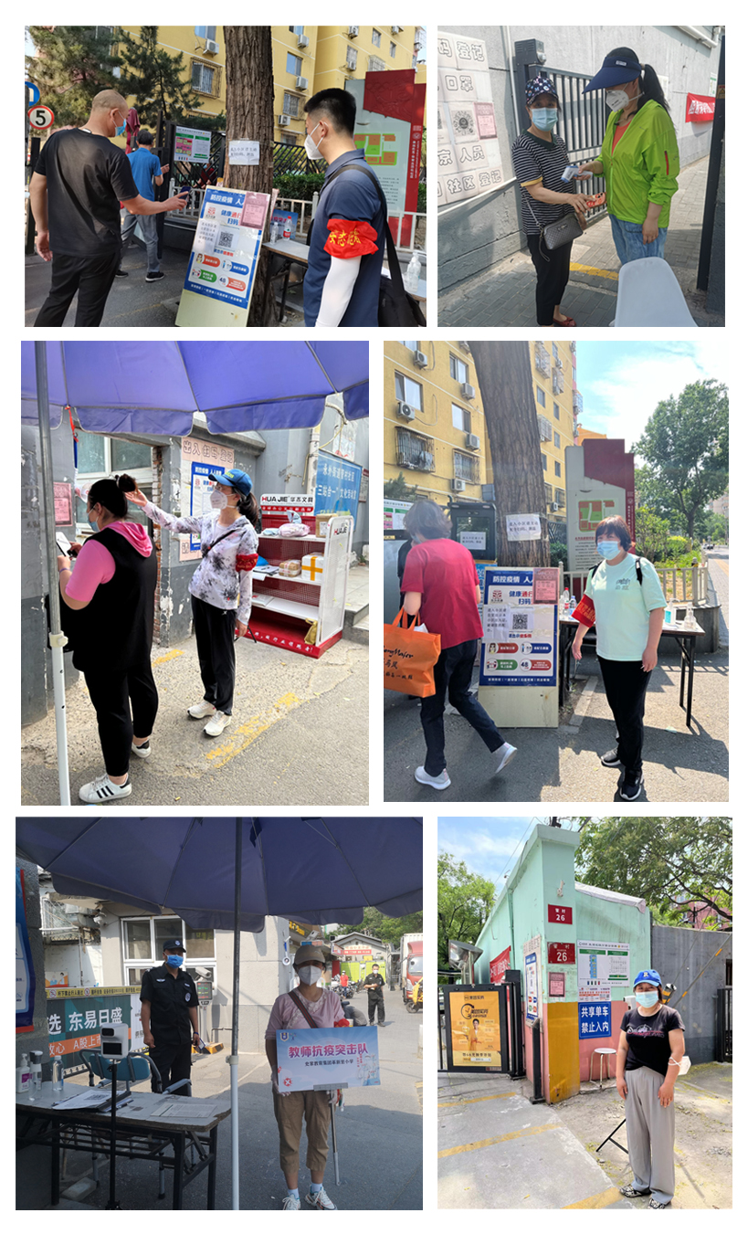 从上午到下午,在管村社区各个楼门点位上都能看到我校教师下沉社区坚守奉献的身影,教师们迎难而上,克服高温天气的影响,不怕苦、不怕累,耐心为社区居民服务,协助社区做好查证、测温、扫码等工作,共同守护社区居民健康。