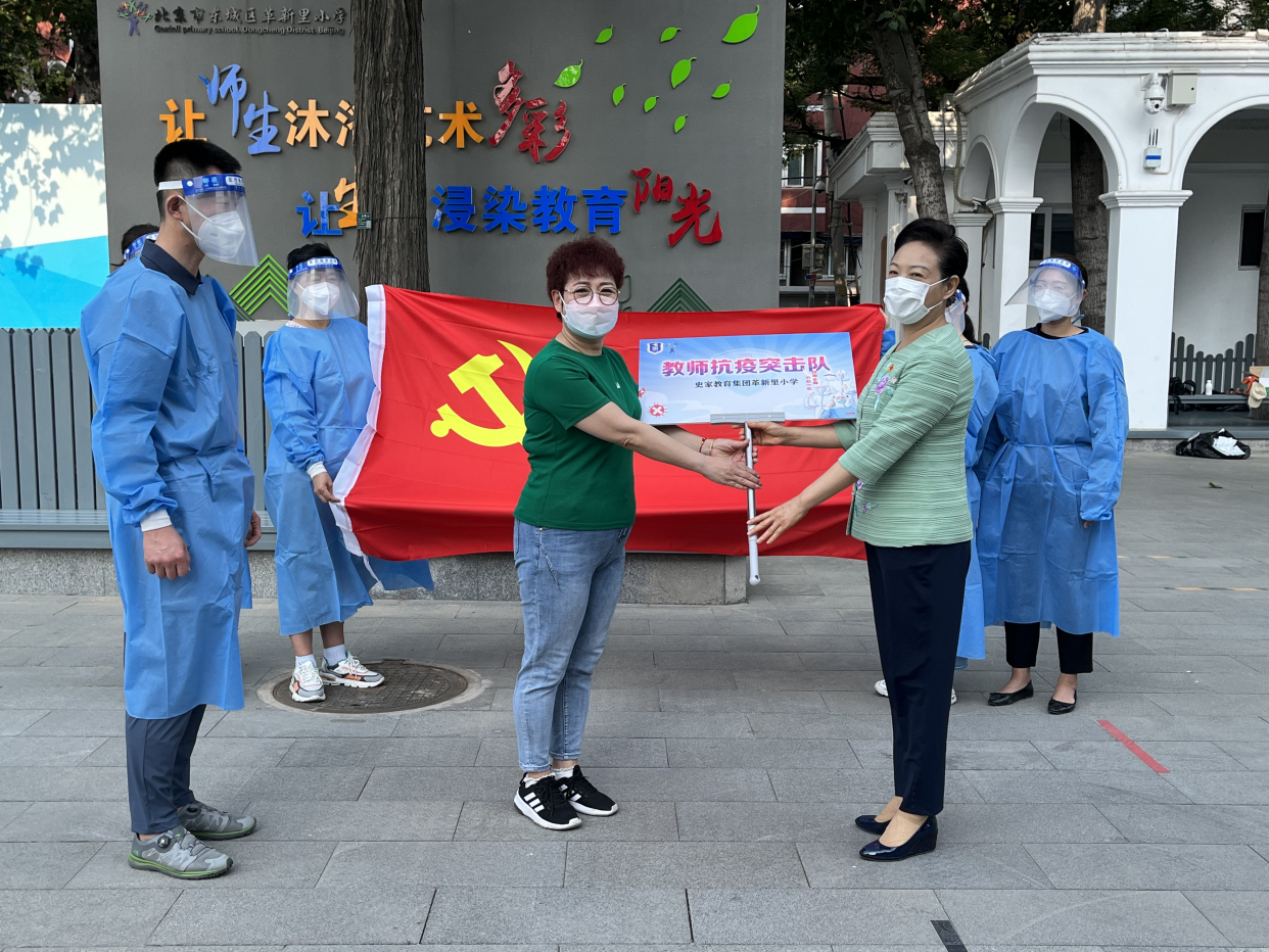 学校党支部为抗疫突击队举行出征仪式,社区领导迎接队员正式启程、上岗。