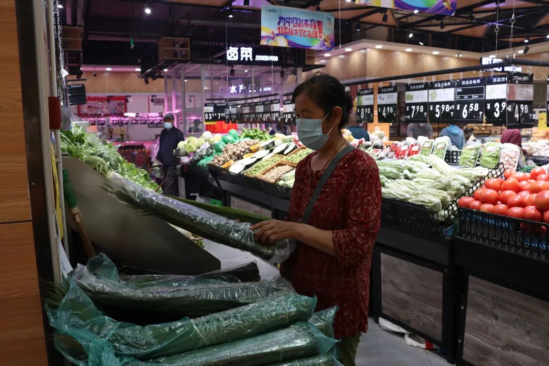 端午节临近,不少居民的购物车内添置了糯米、黄米、粽叶,疫情并未影响市民对节日的期待和祝愿。刚刚结完账的崔女士说:“超市的货品比较全、价格也合理,我们需要什么就过来买,很方便。”