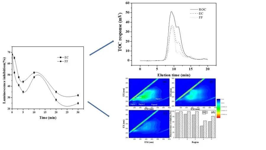 该研究针对石化废水反渗透浓水(ROC)的特征,开展分子量、毒性化合物和重金属等综合分析,构建了电絮凝和类芬顿为基础的处理技术。研究结果表明,类芬顿比电絮凝具有更高的有机物毒性降低能力,浓水的毒性经30min处理后最终降低64%。
