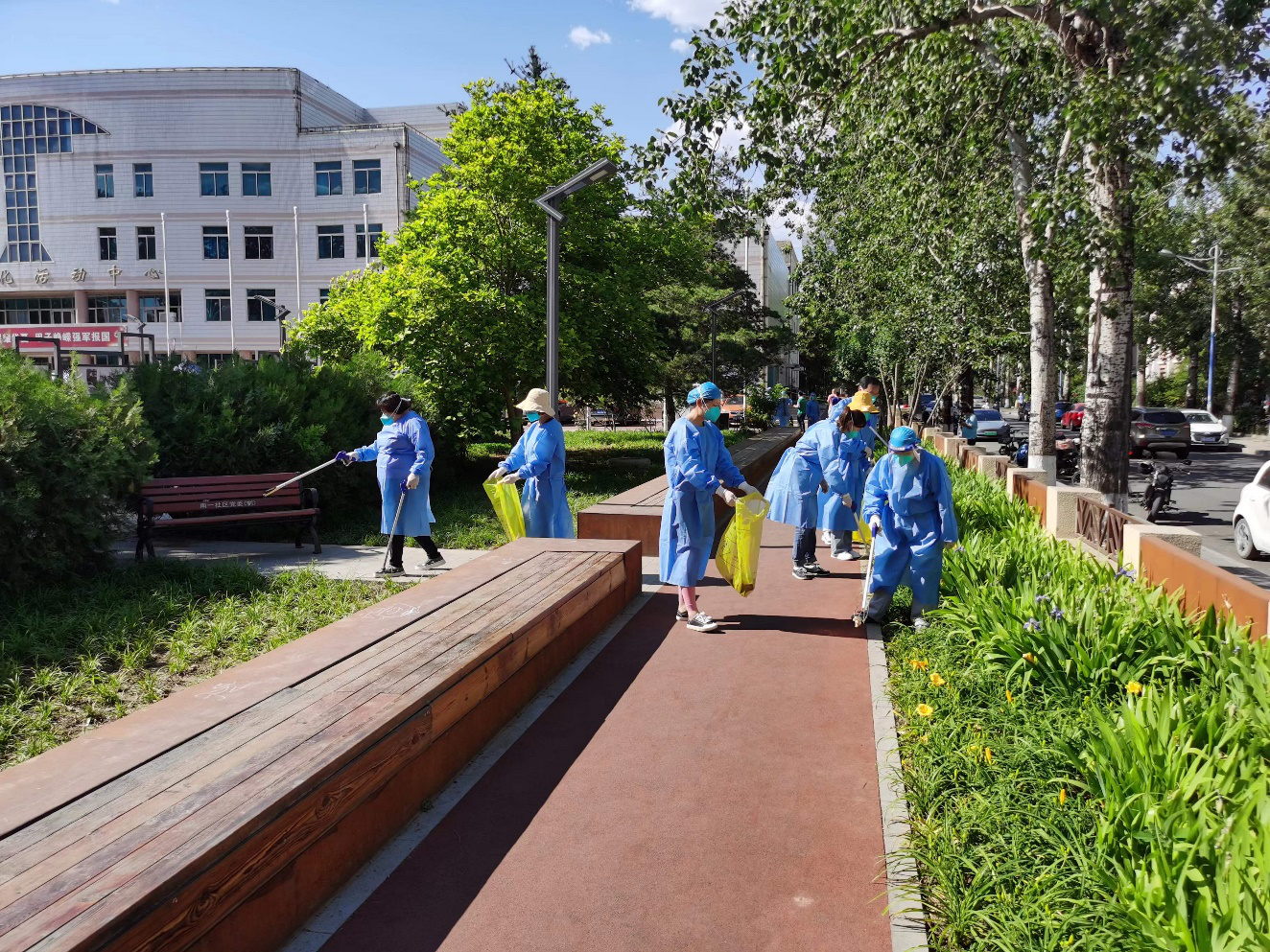 在云岗文化活动中心采样点,南二社区持续开展新时代文明实践志愿服务活动,在核酸检测服务结束后,对园区周边进行清理、检查,为后续参与核酸检测的居民提供文明健康的公共环境。在镇岗南里社区,北区东里11楼西侧坡道上方包裹热力管道的外层材料被大风刮起,竖挡在马路中央,严重影响居民交通出行。住在4单元的居民微信联系了“民情管家”志愿者及镇岗南里社区干部黄旭。黄旭得知此情况后,立刻赶到现场,将掉落的材料系到不妨碍居民出行的高处,并由社区书记及时联系物业经理,立即修复完毕,整个过程用了不到一小时,未影响交通秩序和居民出行。
