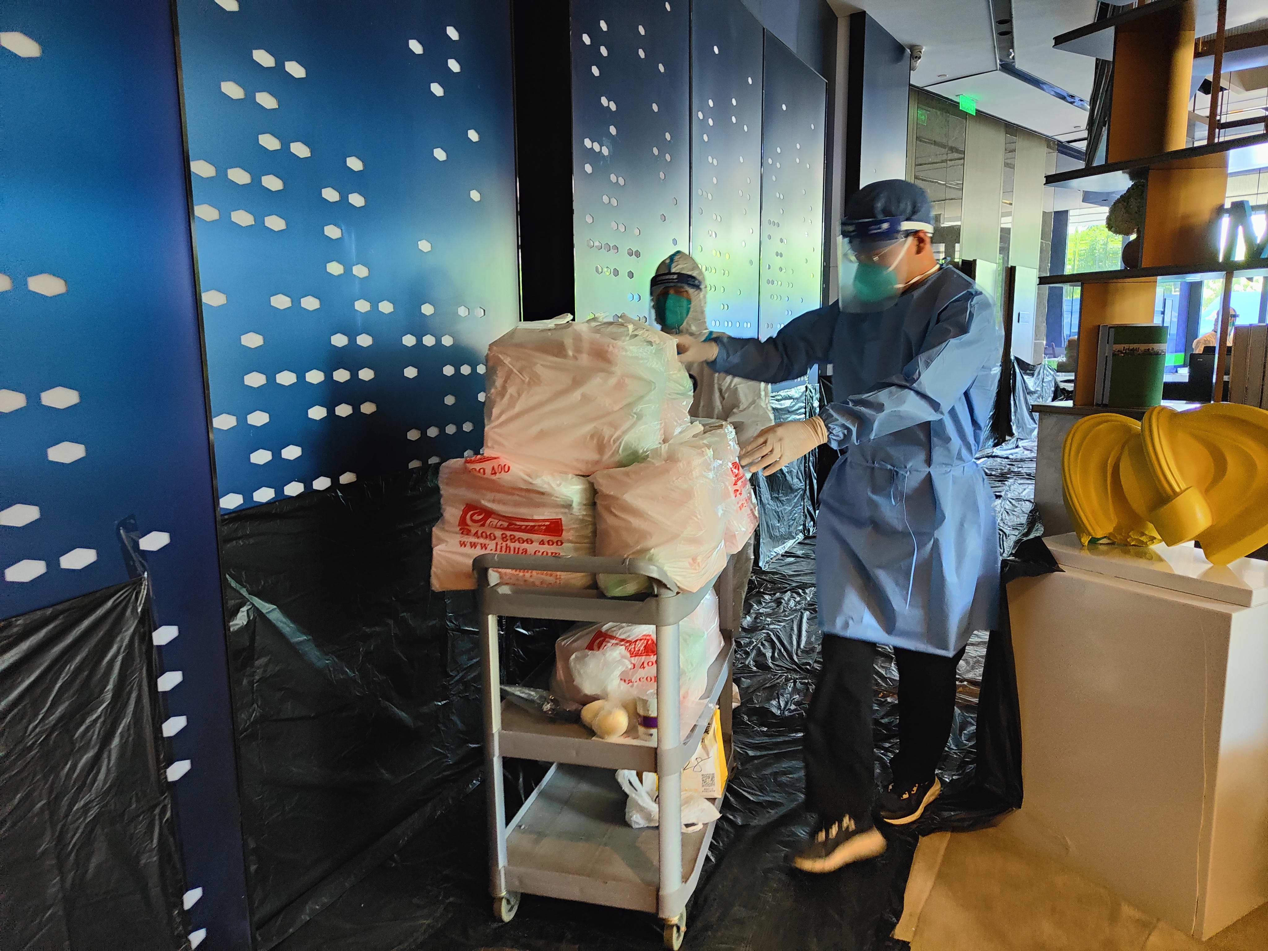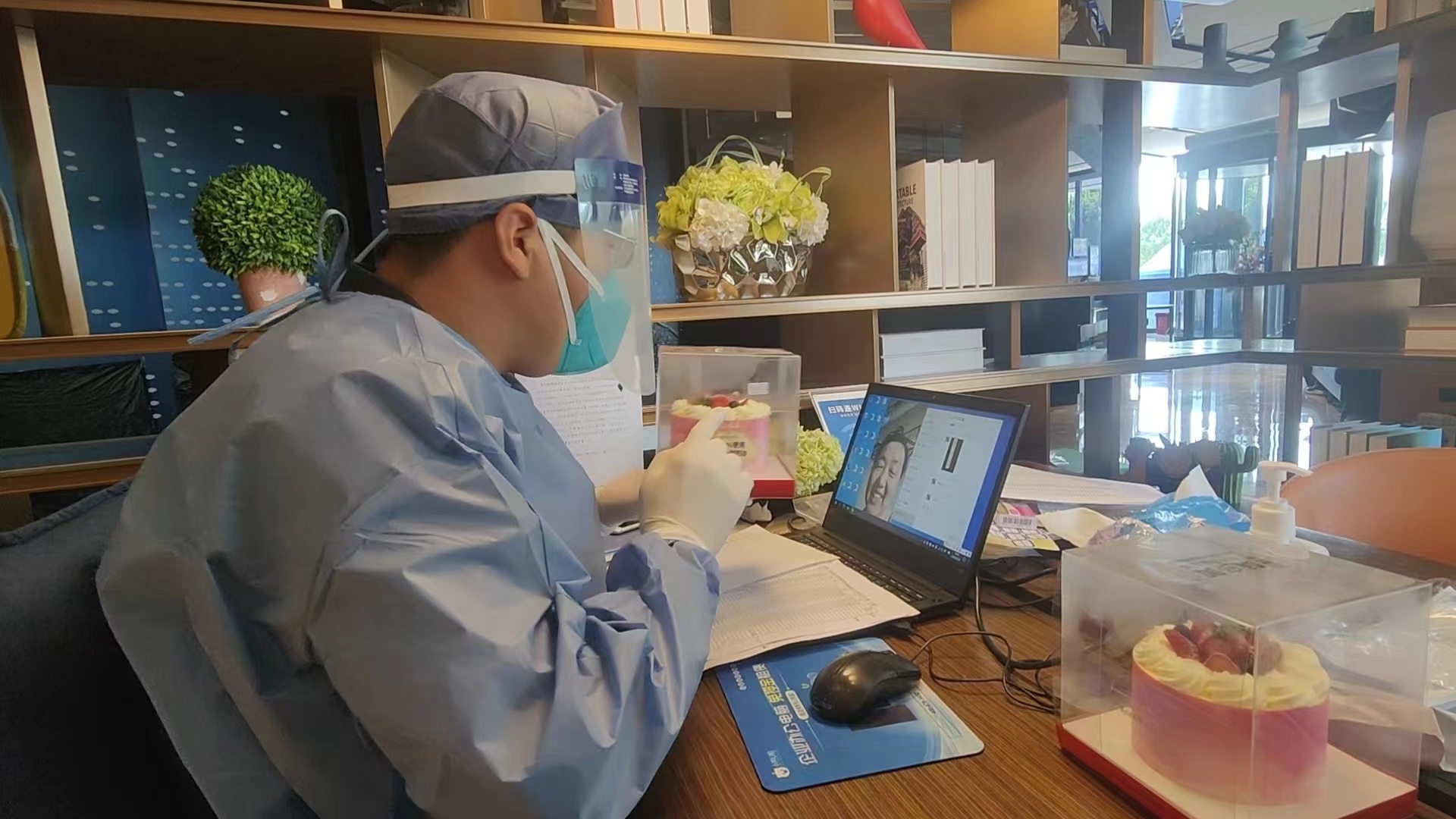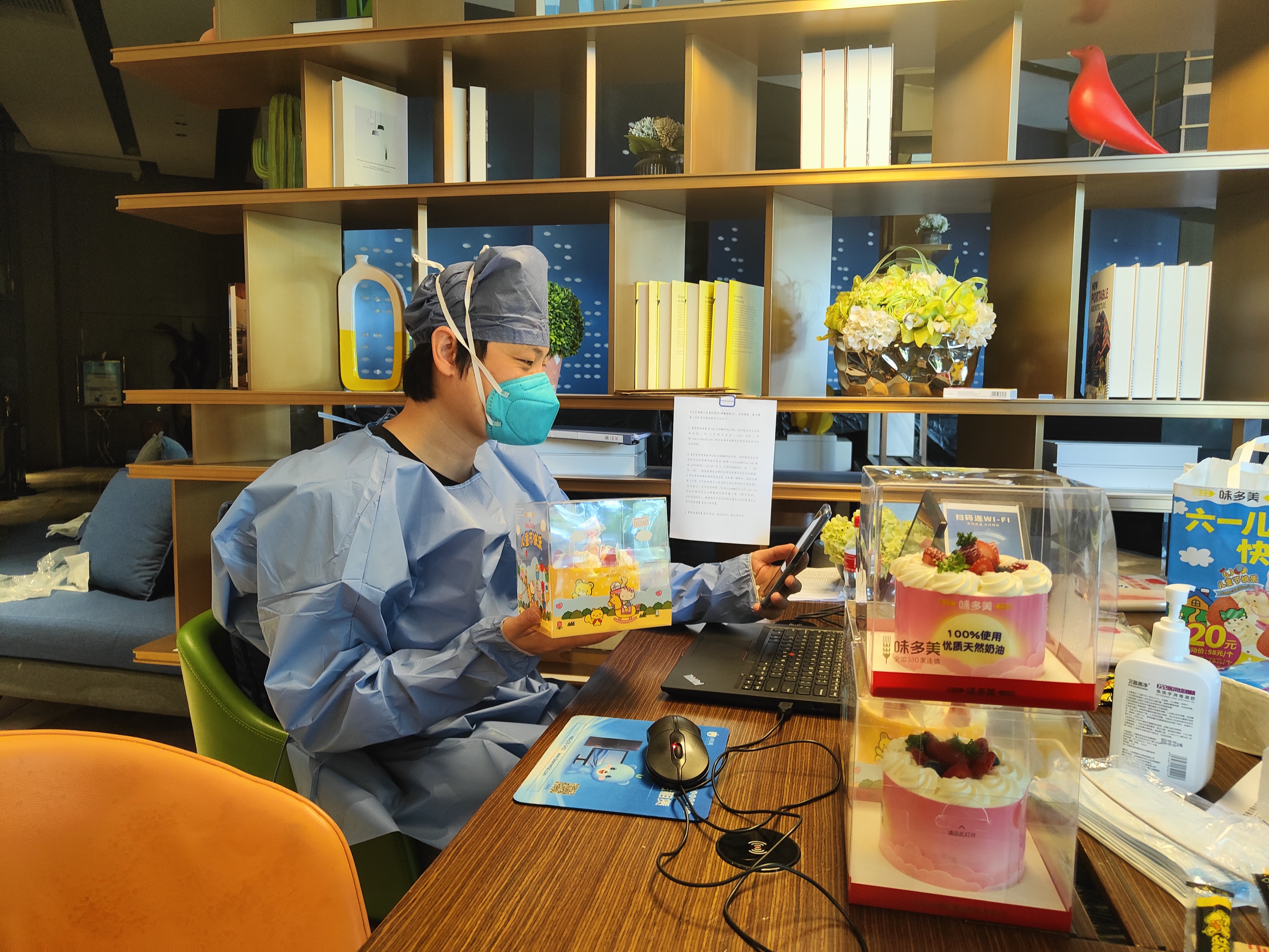 6月1日,东高地街道健康监测点的工作人员为监测点的4名小朋友送上送去了六一儿童节蛋糕与节日祝福,让孩子们在隔离点也同样感受到节日的欢乐。