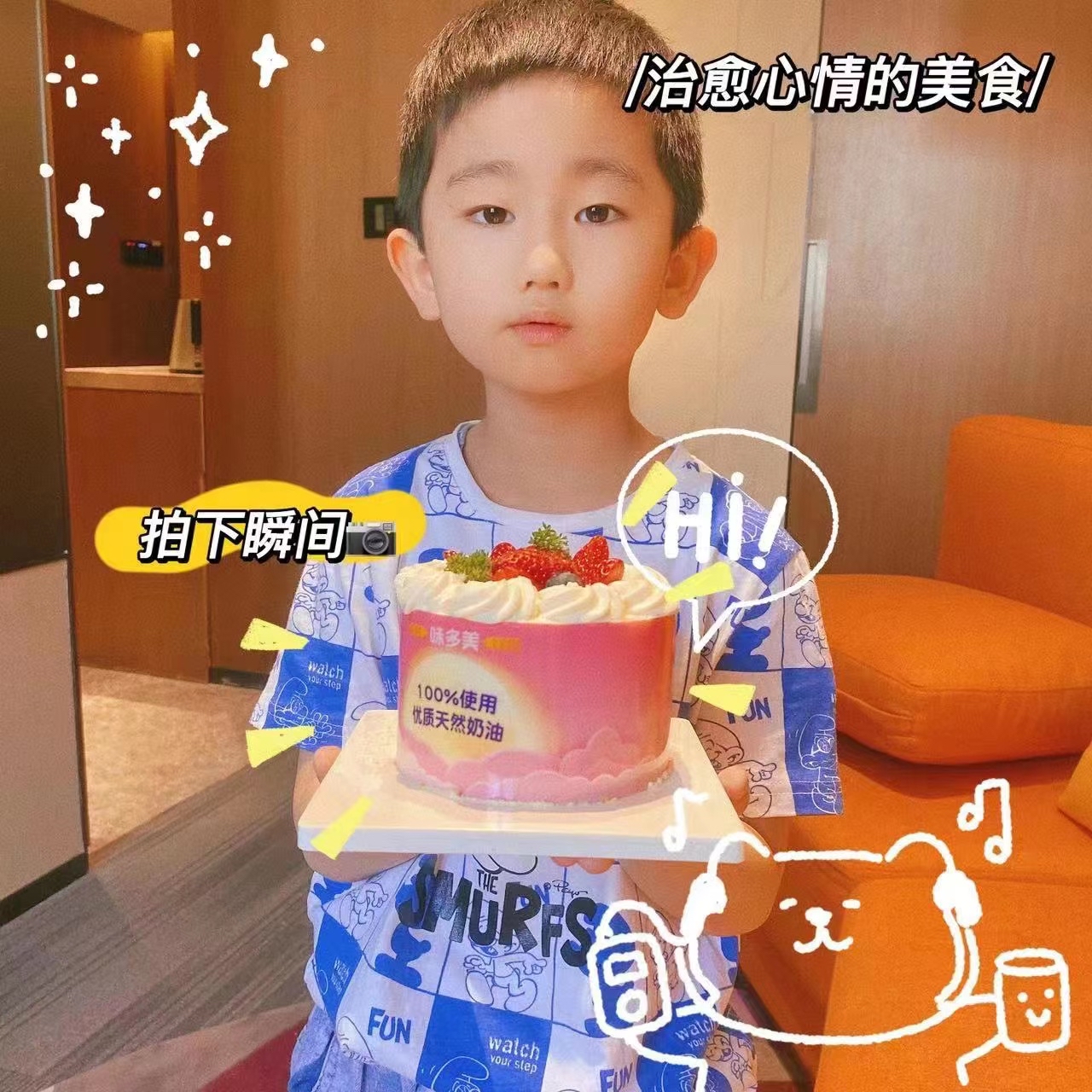 “谢谢小蓝叔叔,蛋糕可甜可甜啦。”