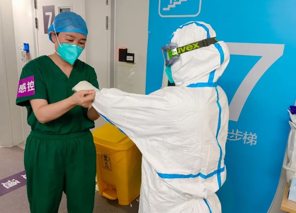 第一,穿很重要,必须要认真盯,不放松。比如,在进入污染区之前就要整理好衣服、手套、护目镜,必要时我们可以提供帮助,尽最大可能避免意外的发生。还要告知,如果发生了暴露应如何应对,避免慌乱。对于新入的医护人员、卫生员等更要多叮嘱几句。