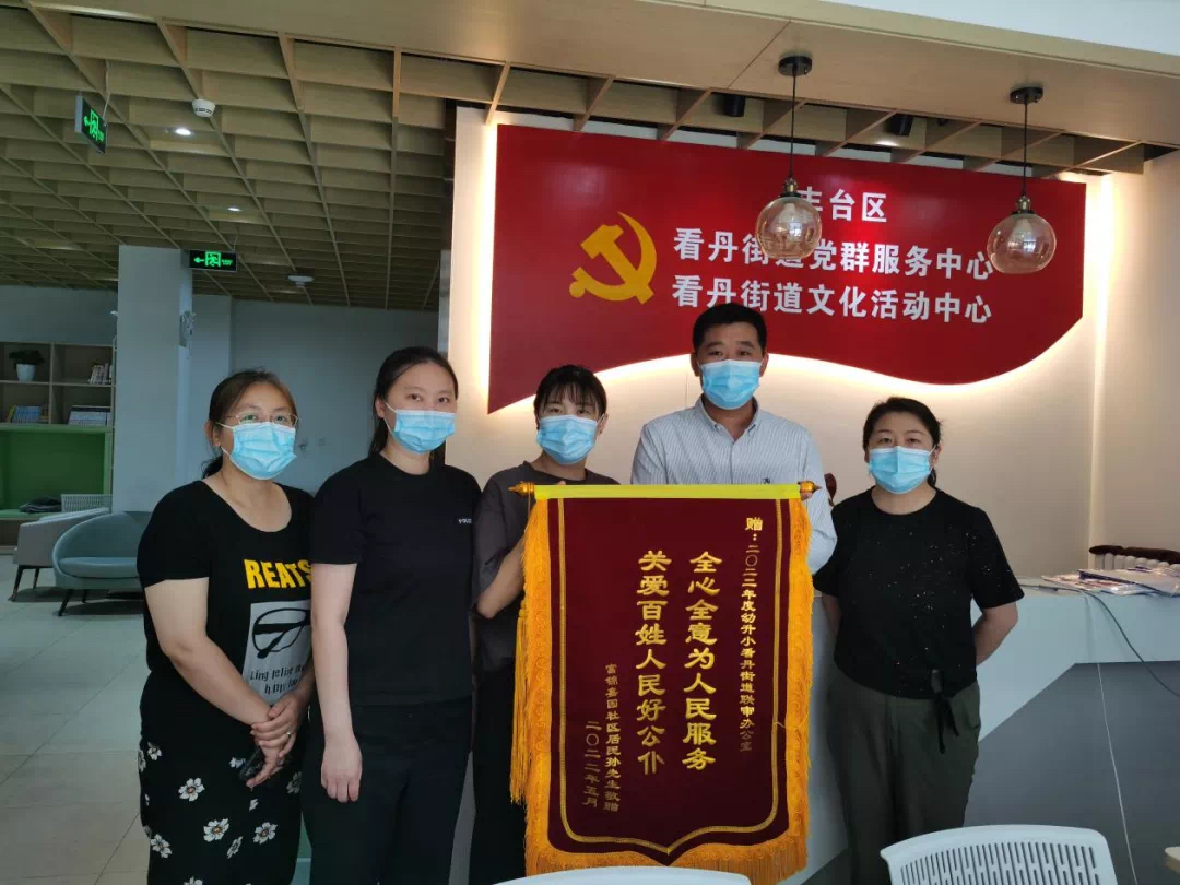 这是个特殊的5月,骄阳似火、全民抗疫,考验和坚持并行,北京市非京籍幼升小资料审核报名工作也如火如荼的进行着。5月30日下午,一位家长再次来到了丰台区看丹街道联合审查办公室,将一面写着“全心全意为人民服务,关爱百姓人民好公仆”的锦旗送到了工作人员手中,对工作人员所给予的关心和专业服务表达感谢。