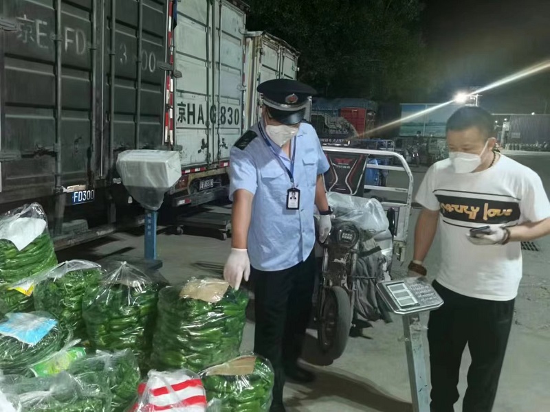 据了解,每天零点至早8点半,再到市场闭市,区市场监管局每班至少2名以上执法人员不间断对重点农贸市场展开巡查,督促市场主办方和场内商户严格落实常态化疫情防控要求。其中,白天重点检查市场入口落实“五件套”要求、非民生保供商户关停、冷链食品管控、“昌平e企通”打卡、生活必需品价格等情况,发现异常及时开展调查,从快从严处置。而夜晚则重点核查入场冷链食品“北京冷链”信息及相关证明情况;重点检查货车司乘人员核酸和“北京健康宝”情况,要求入场前必须进行抗原检测,入场后严格执行“两点一线”要求,避免与社会面接触。