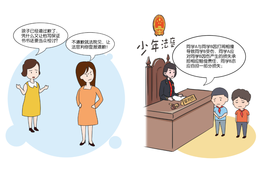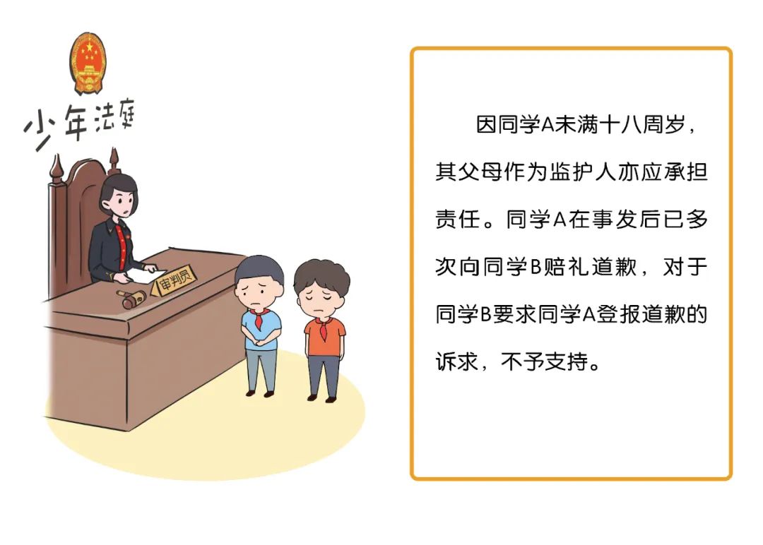 双方家长对于道歉问题产生较大分歧,同学B的家长以同学B的名义将同学A及家长起诉至法院,要求赔偿损失并登报道歉。
