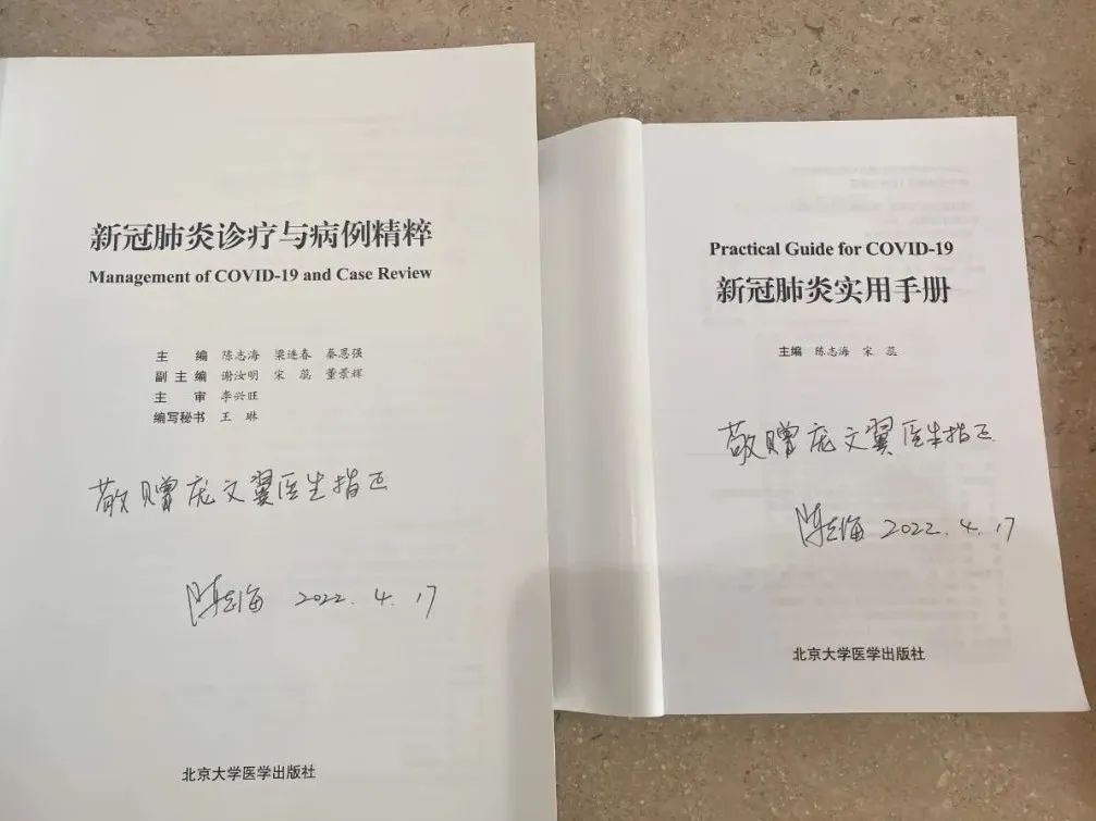 撤离前我们收到了地坛医院感染中心主任陈志海的赠书。老师们在紧张的疫情一线完成临床工作的同时,奉献宝贵的时间整理书稿,这种敬业和求极致的工作精神也令我十分感动。