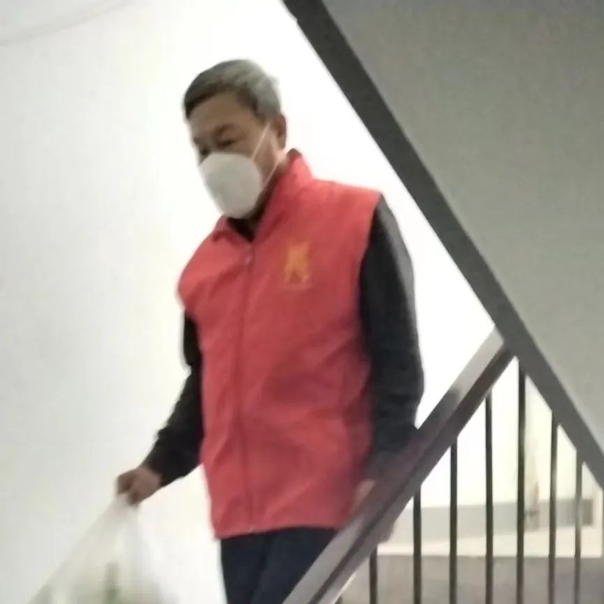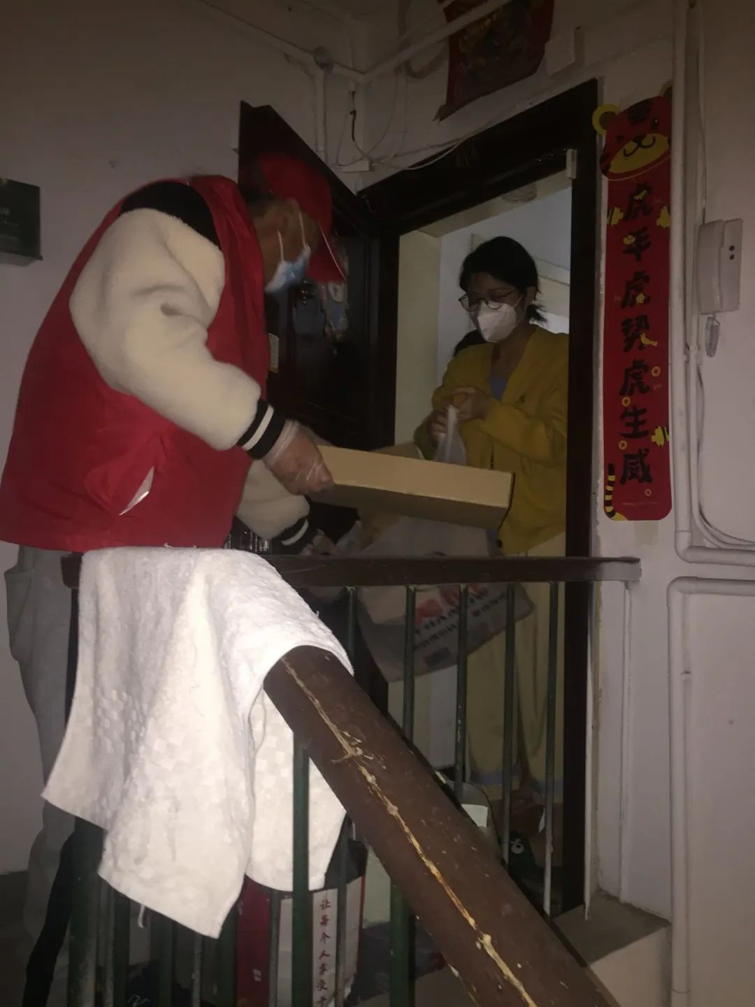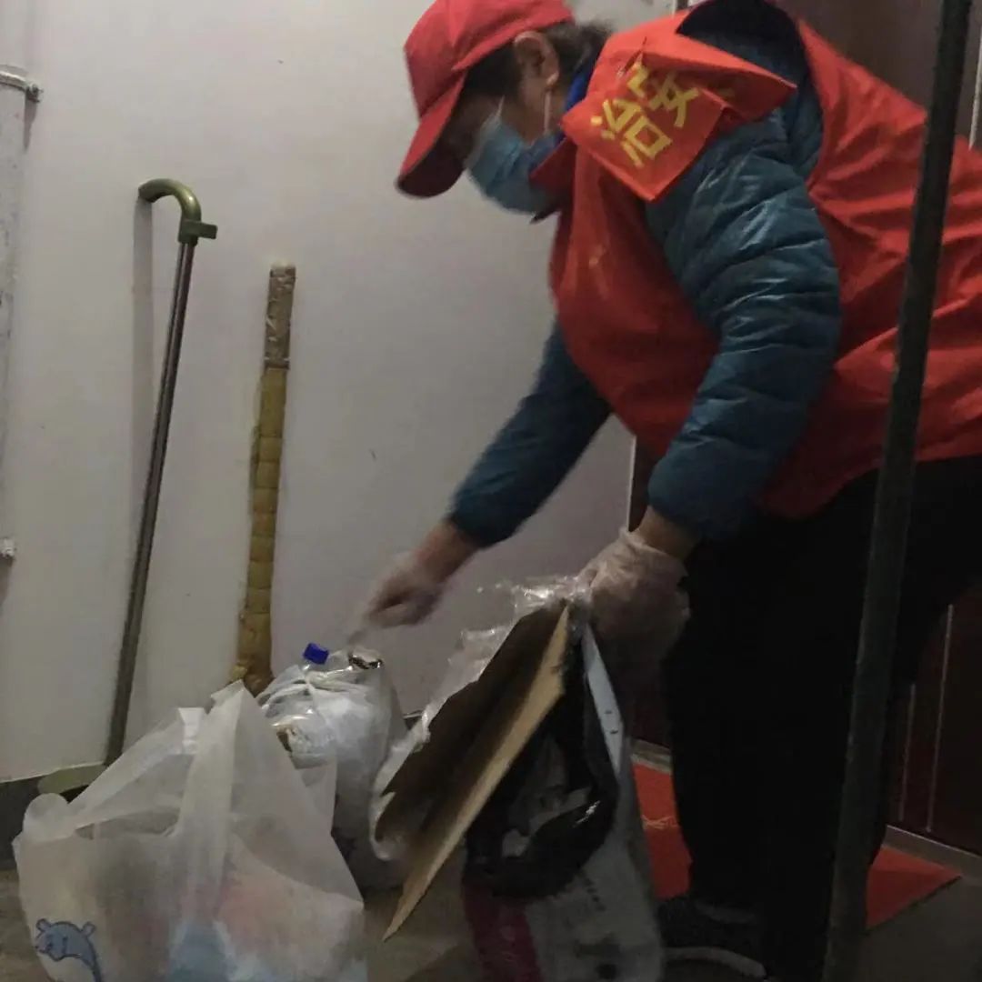 为了保证居家观察的居民日常生活不受影响,志愿者每天忙上忙下,上门送米、送菜、送水、收垃圾、消毒……不漏掉每一份快递,不遗漏每一个环节。没有电梯,爬楼梯上下的他们一天下来也会腰酸背痛,但是他们从不叫苦叫累。