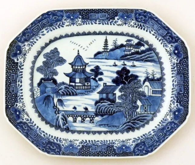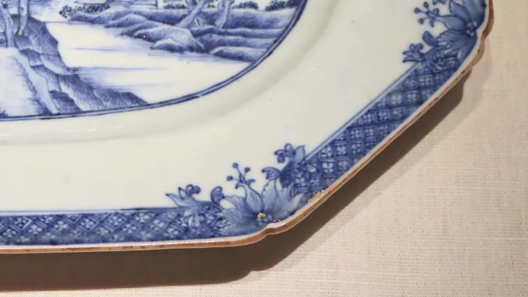 △ 青花山水纹纹章八角长盘 清 乾隆(1736-1795)