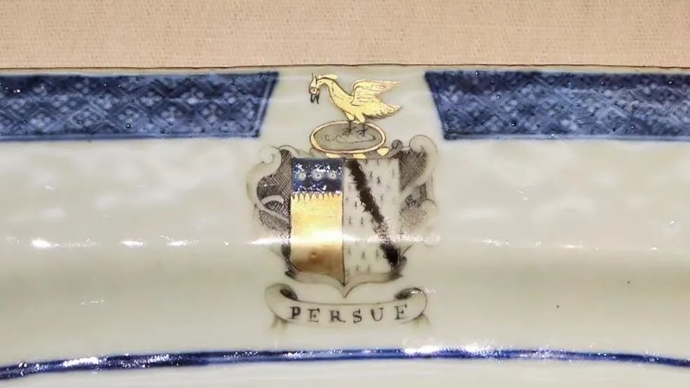中国瓷器到达欧洲后,出现了标志一个国家、一座城市、一个军团、一个家族或一家公司徽章纹饰的定制瓷器,称为纹章瓷,专供西方国家或军队授勋,成为权威的象征,或贵族喜庆典礼之用。18世纪欧洲贵族和上层人士以拥有装饰纹章的中国瓷质餐具而感到最为荣耀。