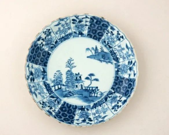 △ 青花风景纹菱口盘 清 康熙(1662-1722)