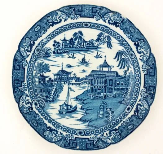 △英国仿中式青花风景纹盘