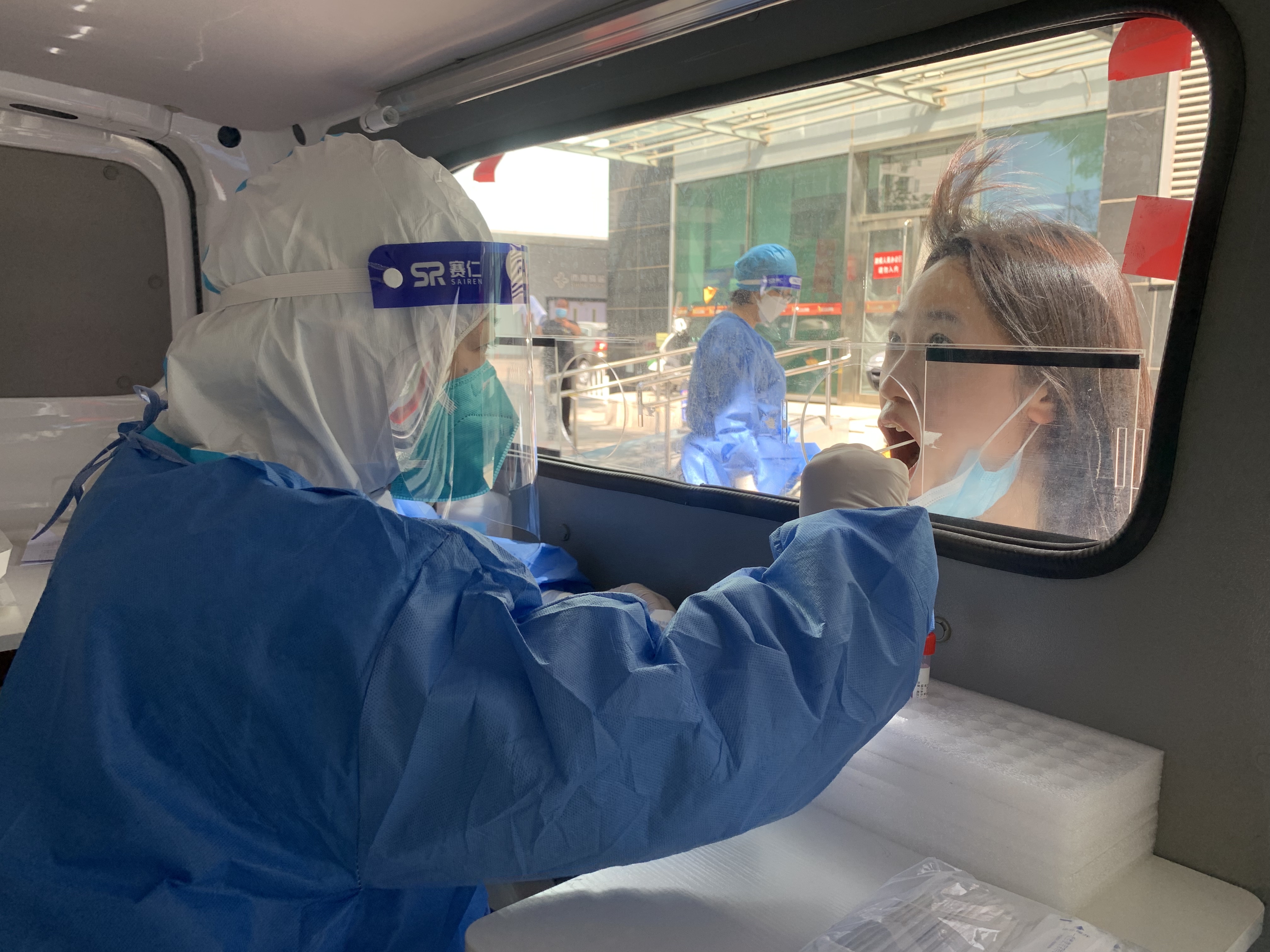 车顶配备的广播小喇叭也有着大用处。“老远就能听见它的宣传,不过这段时间可不能开,得为即将高考的孩子保持一个良好的备考环境。”虽然小喇叭没开,但检测车旁已经有不少冷链的工作人员在排队了,在物美超市冷库工作的杨先生说:“接到通知说移动检测车来了,我赶紧过来做一下,不到一分钟,从登记到检测就完成了,特别方便。”