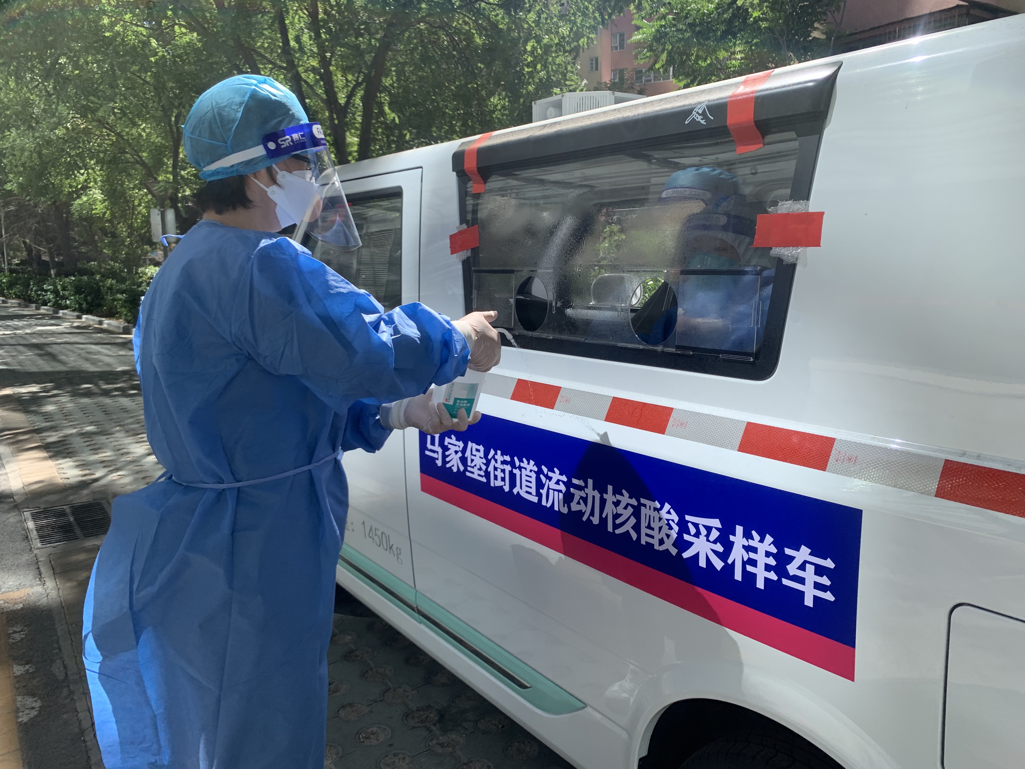 这几天,丰台区马家堡时代风帆楼宇党委楼下多了一辆蓝白相间的小型面包车,其貌不扬。可看到车侧面的一行醒目大字:马家堡街道流动核酸采样车,就知道这辆车可不简单。随时随地,随停随走,为辖区冷库、商场冷链和餐饮这些每日必检的工作人员提供便利检测。