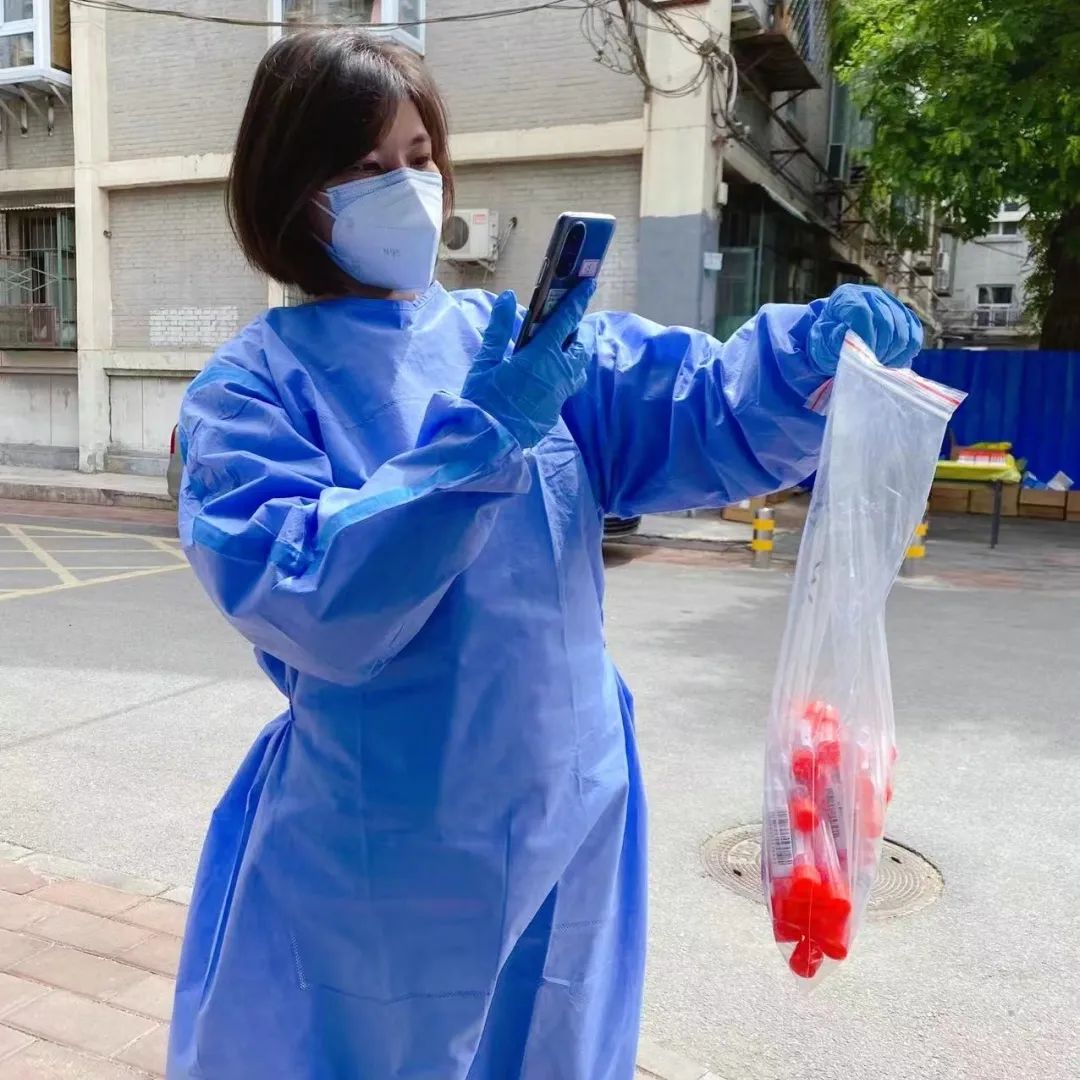 疫情以来,李晓梅、闫林红、张冬梅、周冬玲、杨君、张建忠、王继生等多名工作人员组成试管转运组,一起担负起酒仙桥街道每日核酸采样标本试管转运的艰巨任务。